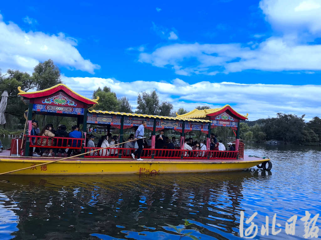 9月14日,游客正乘船观赏避暑山庄湖光山色。记者陈宝云摄