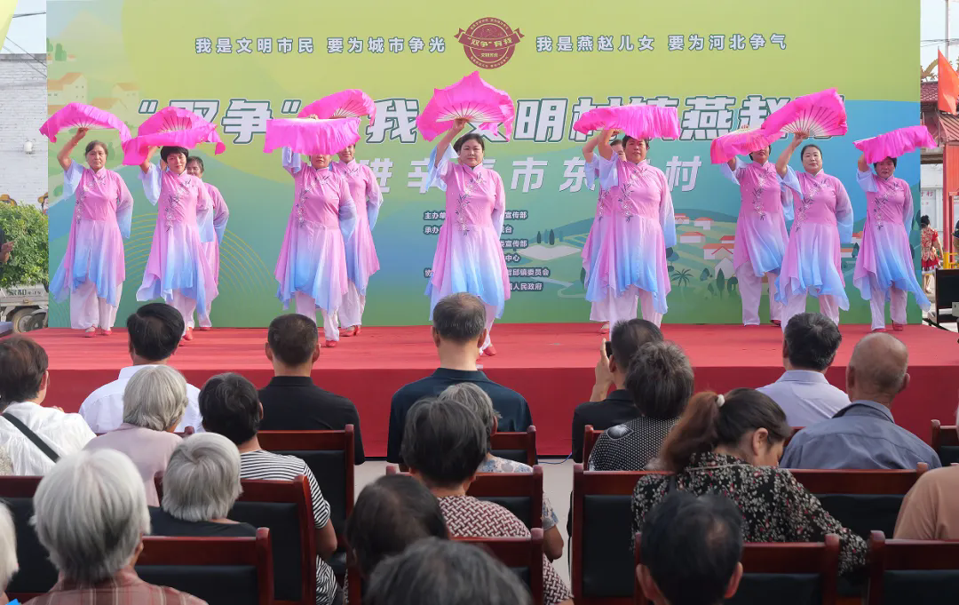 活动现场,人潮涌动,热闹非凡。东陈村的乡亲们和文艺志愿者们用音乐、舞蹈、戏曲等多种形式展现了乡村文化的魅力。舞蹈《秧歌扭起来》、旗袍秀《走卒》、群口快板《赞赞农村新面貌》等节目轮番上演,赢得了在场观众的阵阵掌声和喝彩声。