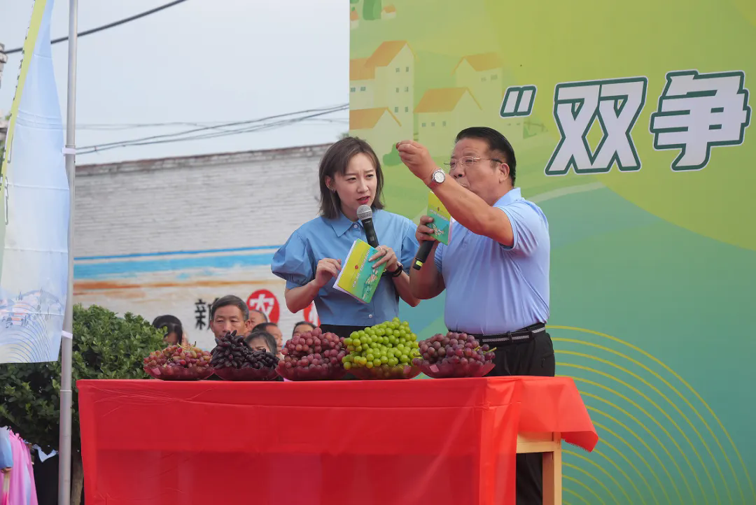 河北广播电视台主持人若彤、农民频道“帮大哥”和东陈村党支部书记穆志科、种植户曹运果、孝敬公婆的好儿媳郭会兰进行互动,分享他们的故事,展现乡村振兴新气象、精神文明新风尚。