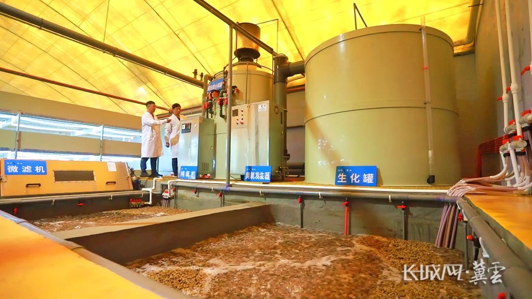 唐山海港经济开发区智慧渔业产业园技术员在检查海水循环设备。产业园 供图