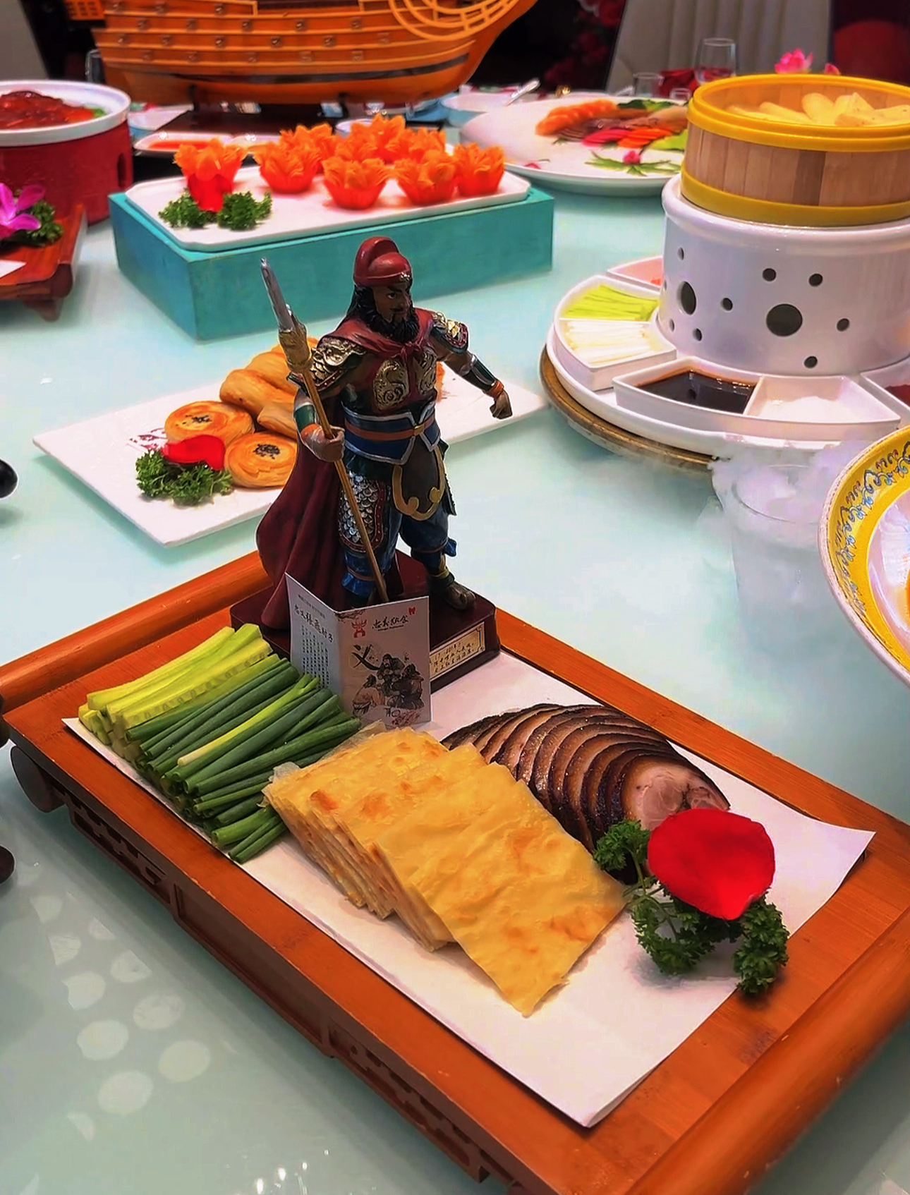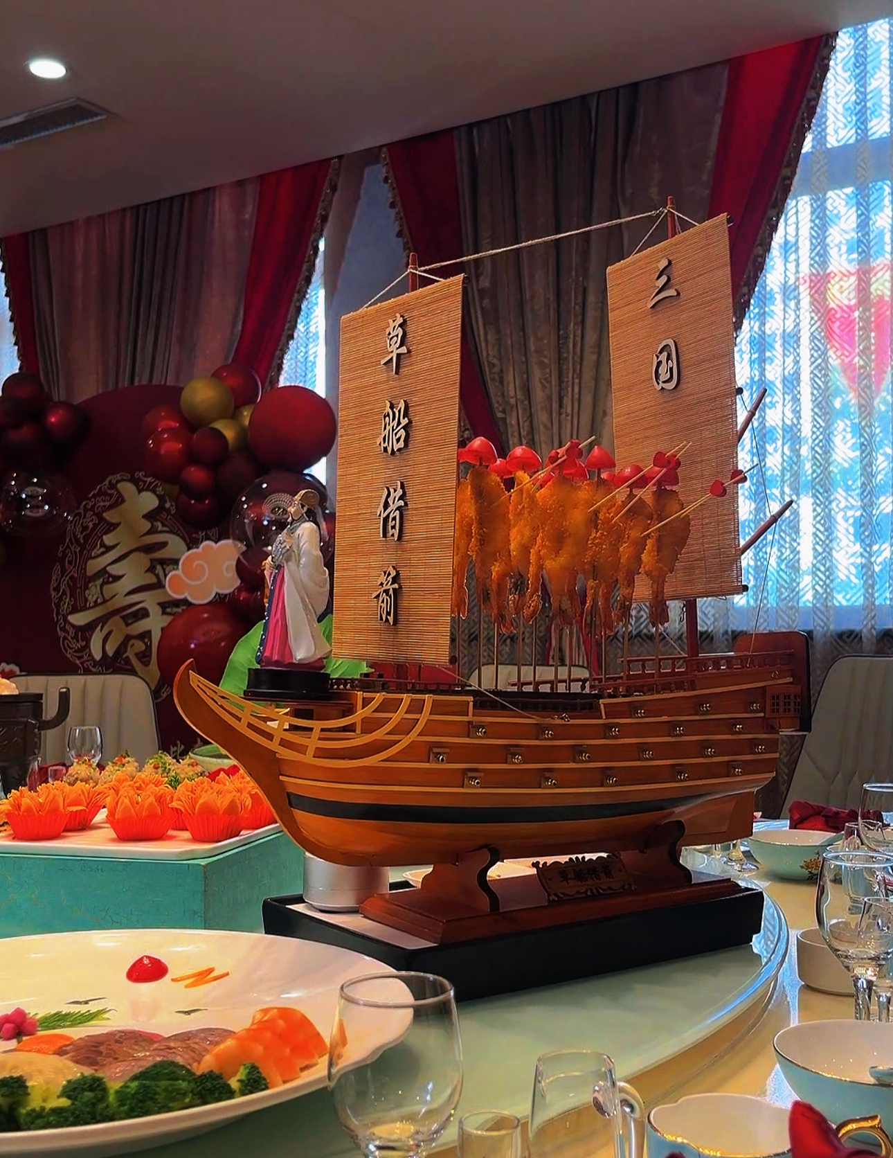 寓意着英雄气概的“张飞黑肘子”,肥而不腻香满口,一口下去肉化渣;造型别致的“草船借箭”,将大虾这一优质食材与传统文化相结合,让跑友们营养大丰收;刘皇叔丸子软糯可口、关老爷小卤皮酥肉嫩、赵云茶道排茶香四溢……这文化特色“三国宴”,处处体现着衡水人的“忠”“义”情怀。