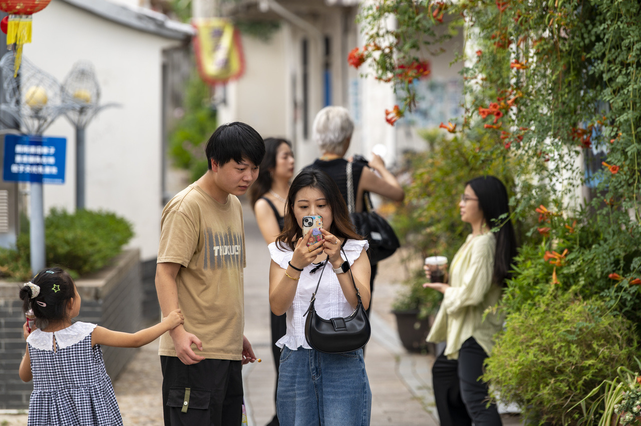 9月15日,李祖村的幽静小巷里,各地游客在打卡拍照,休闲度假。拍友 胡肖飞 摄
