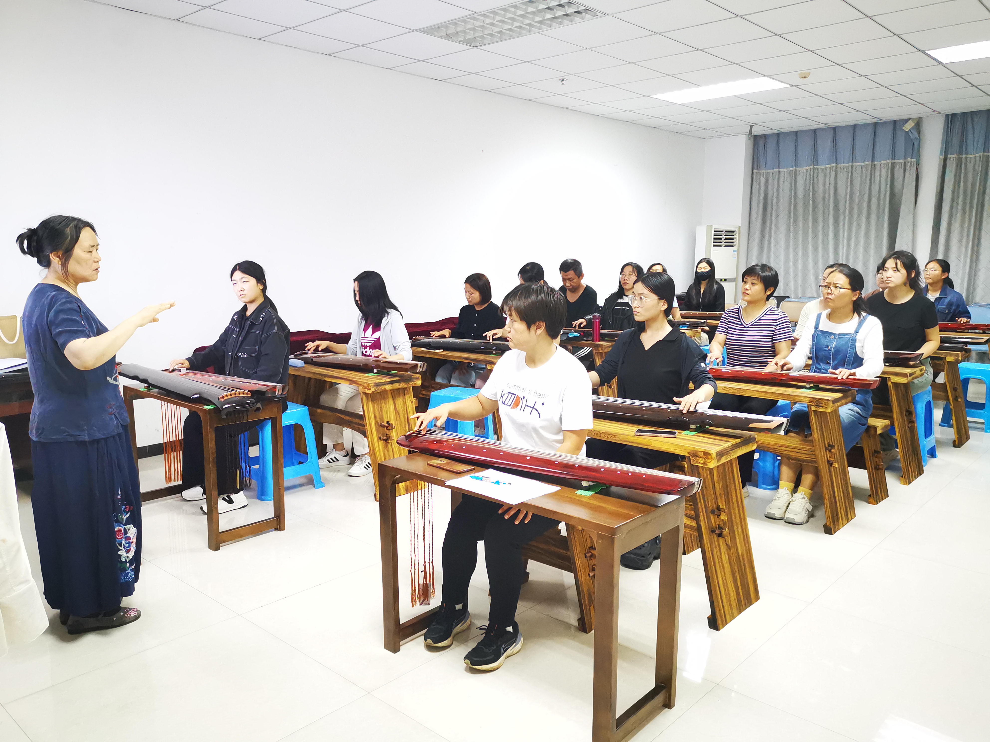 琴声悠扬,铮铮作响……9月18日晚,桃城区文化馆声乐活动室内灯火通明,参加第二期“青年文化夜校”古琴班的学员们,正在老师的指导下练习古琴。