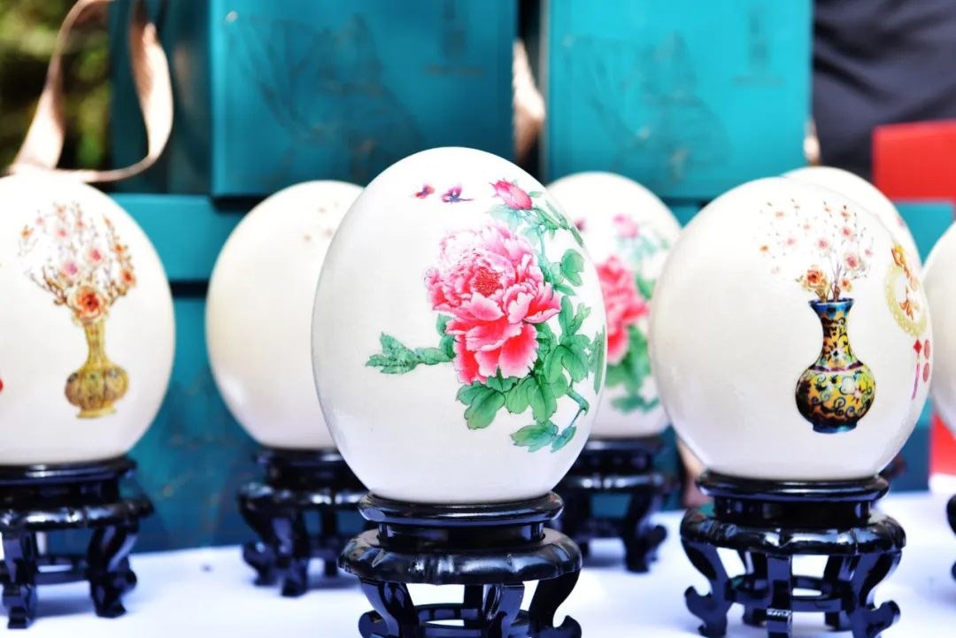 鸵鸟蛋雕工艺品展示。记者曹立峰摄