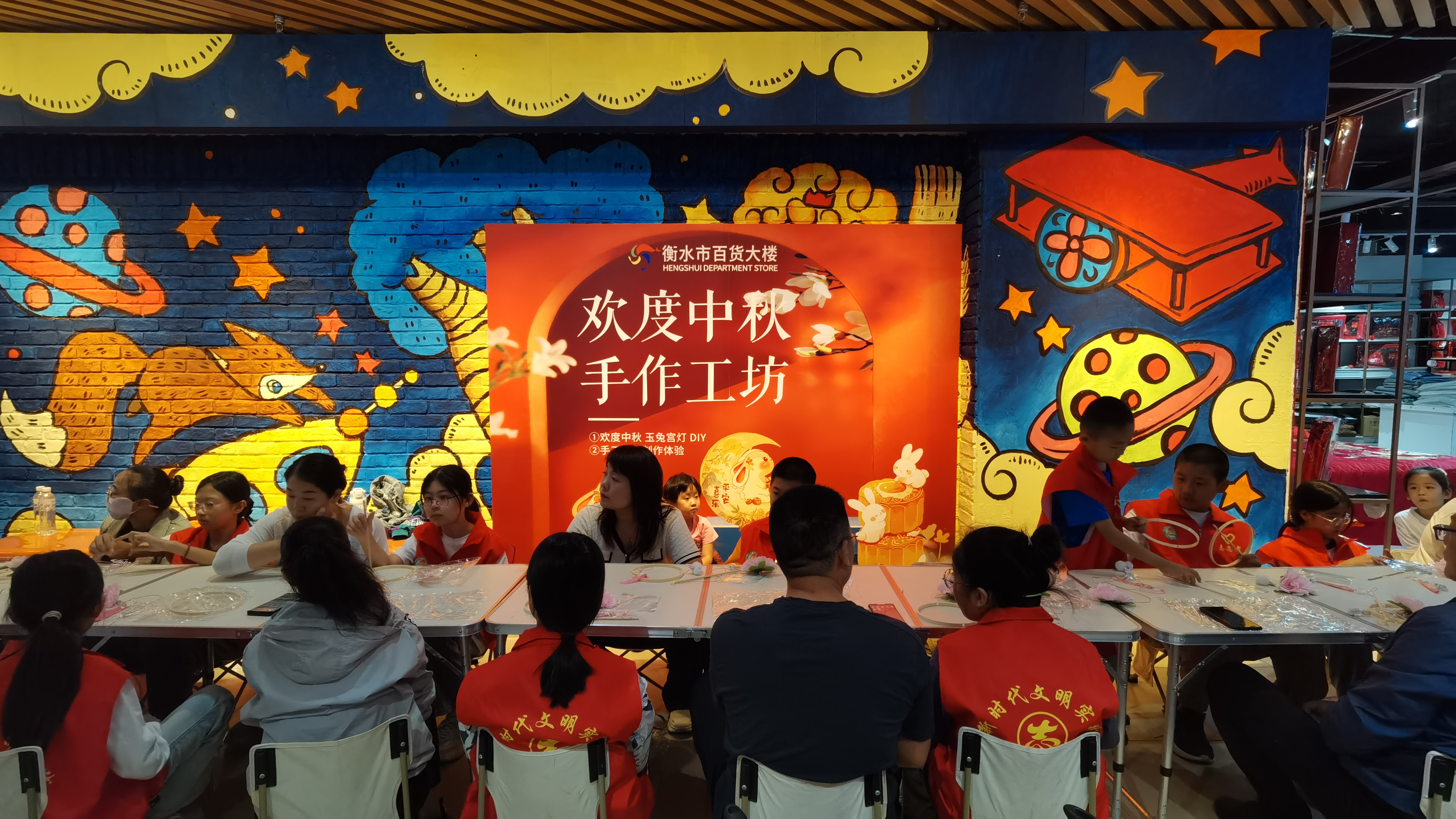 第一双球鞋、第一支钢笔、儿时最爱吃的糖、结婚的物件……衡水市百货大楼已经不单单是大家购物消遣的地方,更像是衡水人民美好记忆的载体,承载了一个时代的记忆,触动着许多人的心弦。为了迎接这一传统节日,商场特别设计了凸显中秋元素的打卡美陈“好事成‘兔’”,顾客在此打卡,还可以领取精美的打包月亮灯创意礼品。中秋非遗博饼嘉年华,顾客任意购即可参加掷骰子博饼游戏,在享受购物乐趣的同时还得到了意外的惊喜!“欢度中秋手作工坊”、中秋古装鱼灯巡游等,让人们在点点滴滴间感受到大楼厚重的人文底蕴,充分享受浓浓的节日氛围。“苟日新,日日新,又日新。”衡水市百货大楼活力永续,就在于始终把握住穿越时光的情感纽带与文化的永恒传承。中秋动漫游戏展及“黑神话悟空机甲巡游”,极大地丰富了大楼年轻客群的娱乐选择,提升了家庭一站式购物体验!