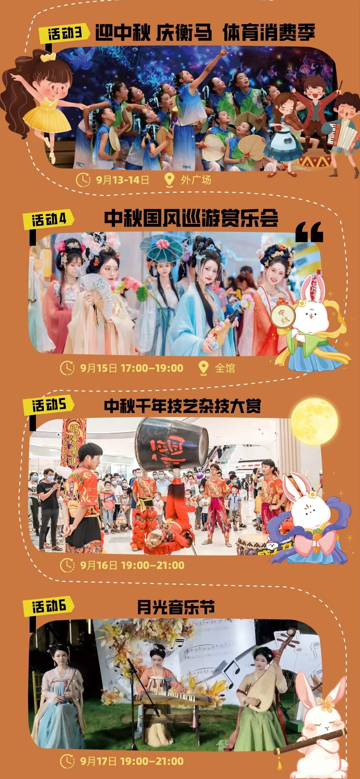 中秋节期间,衡百怡然城精心准备“非遗”中秋系列活动,提前半个月的宣传发动,让“城粉们”充满期待:9月15日,穿着国风服装的少女在怡然城各个打卡地热舞,进行娱乐互动,使得人们有一种穿越感,吸引着人们的眼球;9月16日,由11名省级非遗演员生动演绎了威风凛凛的荧光舞狮,精彩绝伦的飞叉、高车,让人拍手叫好!顶坛子、晃板顶技与蹬技,特别是蹬技演员脚踩木柜将两个8岁女孩转动的那一瞬间,台下观众再也按捺不住惊叹的表情!“变脸+吐火”,幽默十足的美猴王,台下嗨笑连连!罗圈献彩,观众久久不散去,意犹未尽;9月17日,诉说浪漫,怎能少了载歌载舞!由省级民乐乐团用古琴、二胡、琵琶为演绎了悦耳动听的经典曲目,还有现代与古风碰撞的国风戏腔乐队,接连演绎着浸人心脾的曲目……一场场活动,现场的火爆引流网端的跟进,无疑城了衡水文旅升级的生动展示。