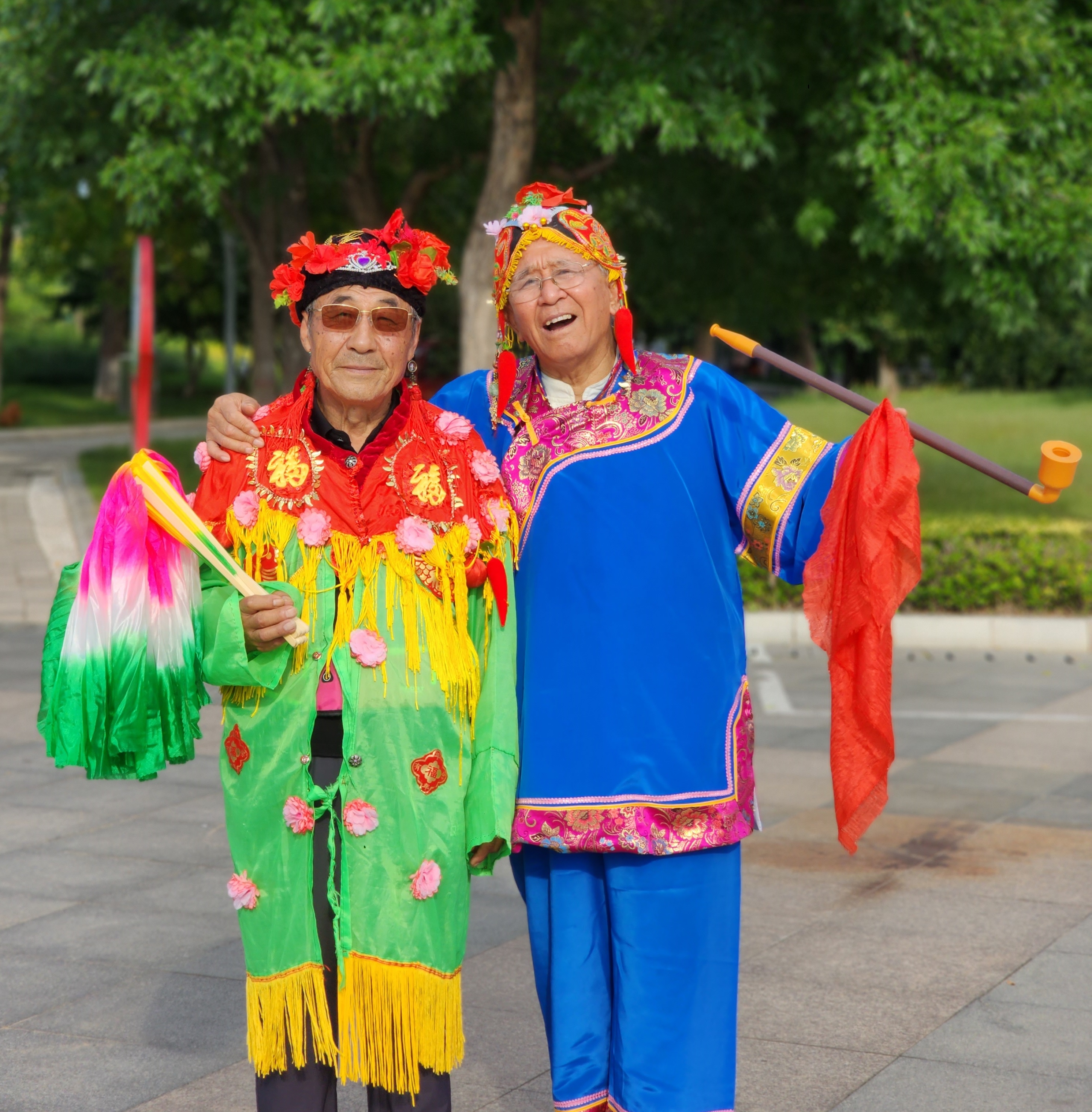 扭秧歌给老年人带来快乐。