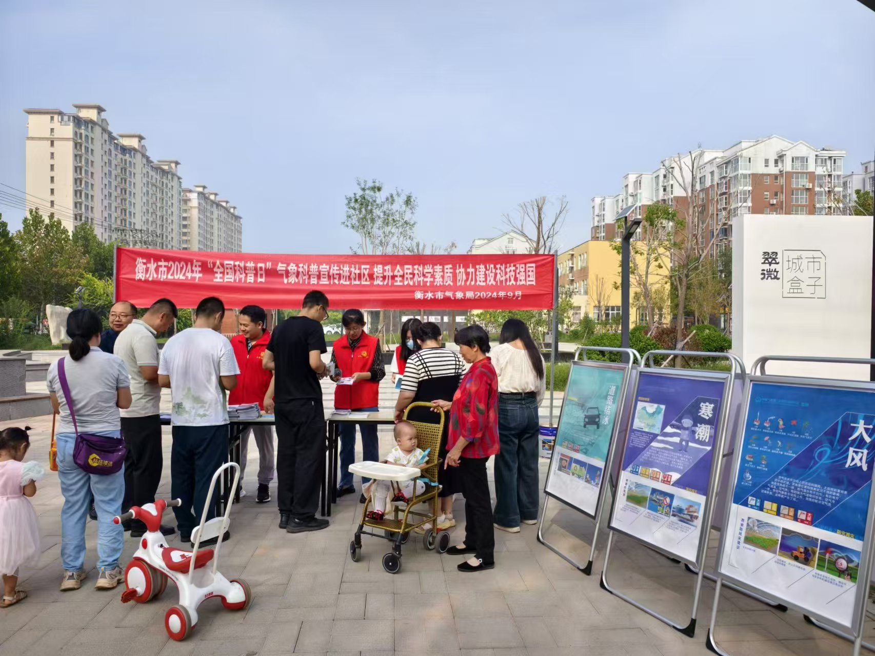 9月20日上午,围绕2024年“全国科普日”主题“提升全民科学素质,协力建设科技强国”,衡水市气象局在桃城区河东街道办事处太阳城社区组织开展科普宣传活动。