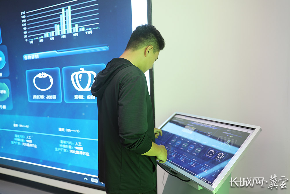 冀州现代农业示范园指挥中心内,工作人员实时查看大棚情况。长城网·冀云客户端记者 张梅胜 摄