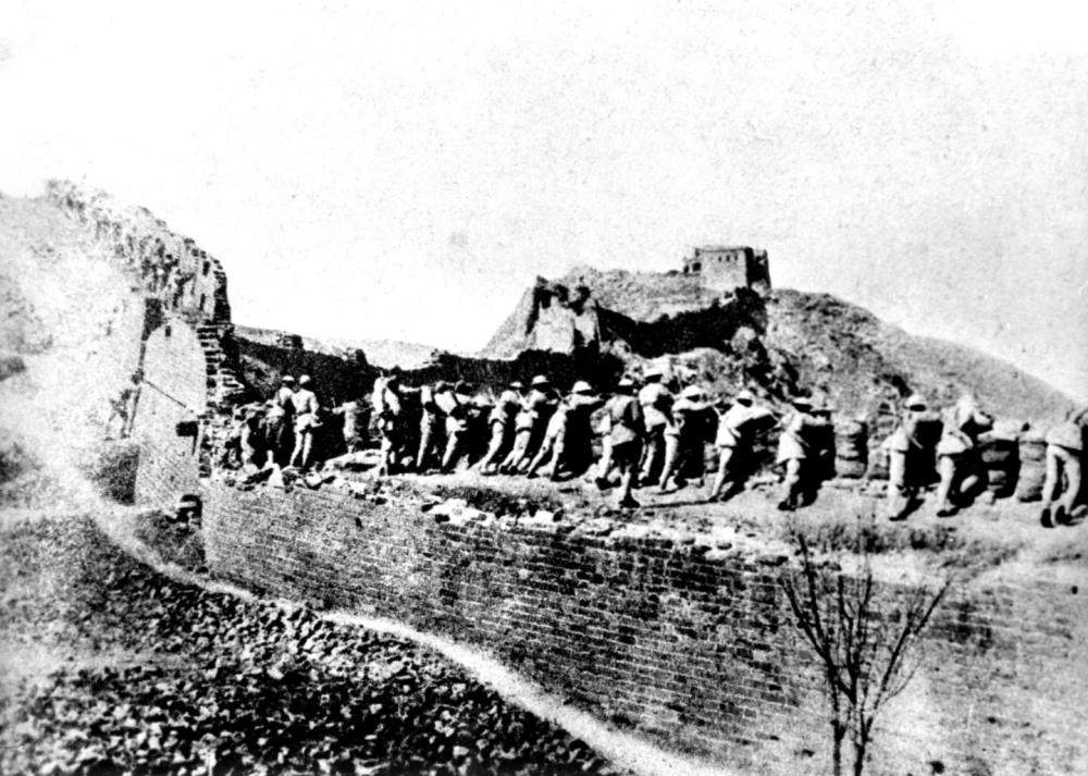 这是1933年3月,驻守喜峰口的第29军,在喜峰口与古北口之间的罗文峪布防。新华社资料片