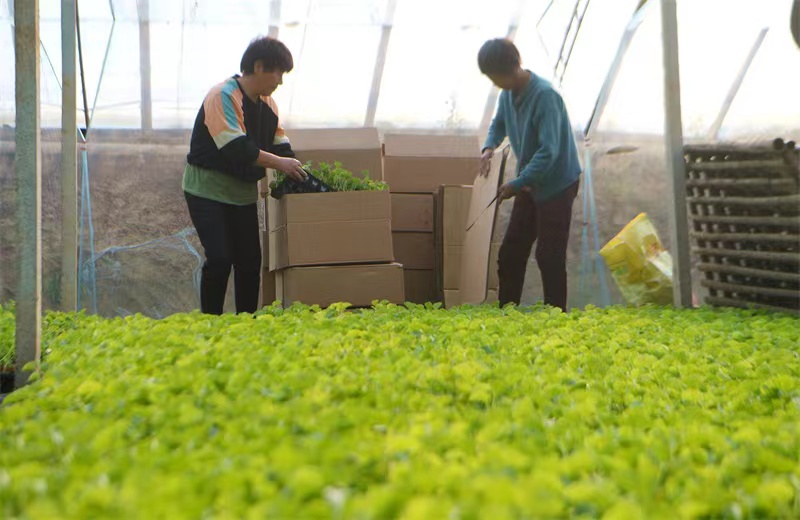 政策帮扶“给力”,自救马不停蹄。除了专业的施工人员外,平时在韩恩卫温室里打工的乡亲们也都来了,大家齐心协力,力争不误农时。历时三个月,全新的钢架温室和苗场搭建完毕,并且全部进行了基础设施的提档升级:新建的苗场摒弃了之前的土墙,全部采用立体钢结构,同时增加了自动机械化喷淋、风机控温系统等智能设备,让育苗成效大大提高。“苗棚里都配备了智能喷水车,水流大小可以设置,水喷的匀,还不浪费,节省了很多人力。”说起新建苗场的种种好处,韩恩卫打开了“话匣子”。有了更多科技“加持”,苗场很快投入使用,甘蓝苗、西红柿苗、甜瓜苗、黄瓜苗......由于种类丰富且品质好,韩恩卫的种苗颇受市场欢迎,在3月份和8月份两个售卖旺季,出货速度都非常快。