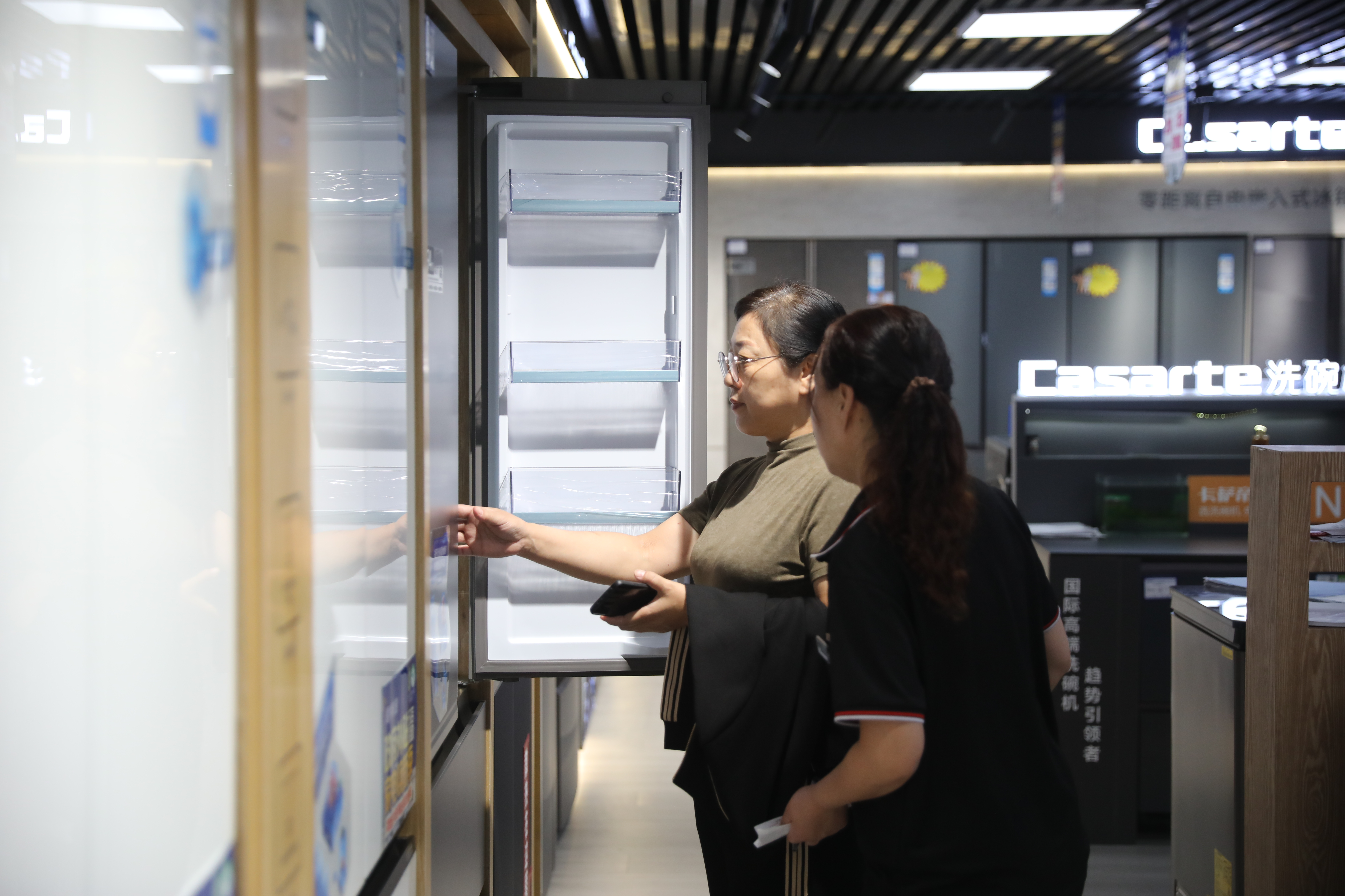 记者在爱特购物中心的家电卖场看到:“一级能效、水效补贴20%;二级能效、水效补贴15%;每件最高补贴2000元;不管您家中是否有旧家电均可参与”的宣传语到处悬挂;许多消费者在销售人员的指导下下载云闪付、领取优惠券,在销售价格(产品剔除所有折扣优惠后成交价格)基础上,按照相应补贴标准购买了选中的家电。“想添个冷柜,前段时间看了看1000多块钱,犹豫着没买,今天一看800多块,果断下手!”算着刚刚“立减”的200多元,市民马女士十分高兴。