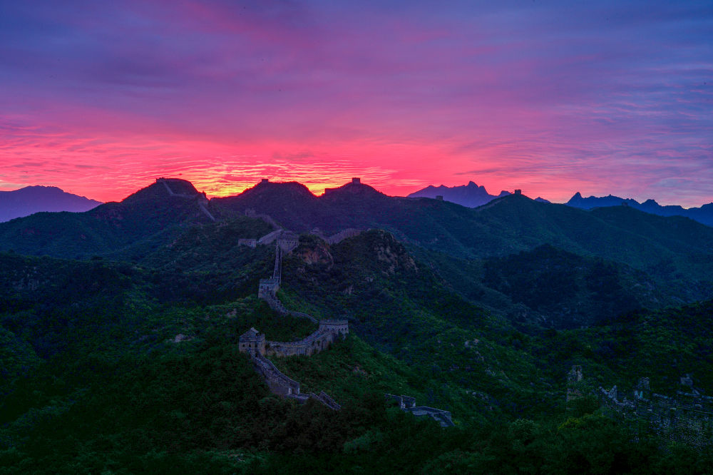 金山岭长城朝霞美如画。图片来源:新华社
