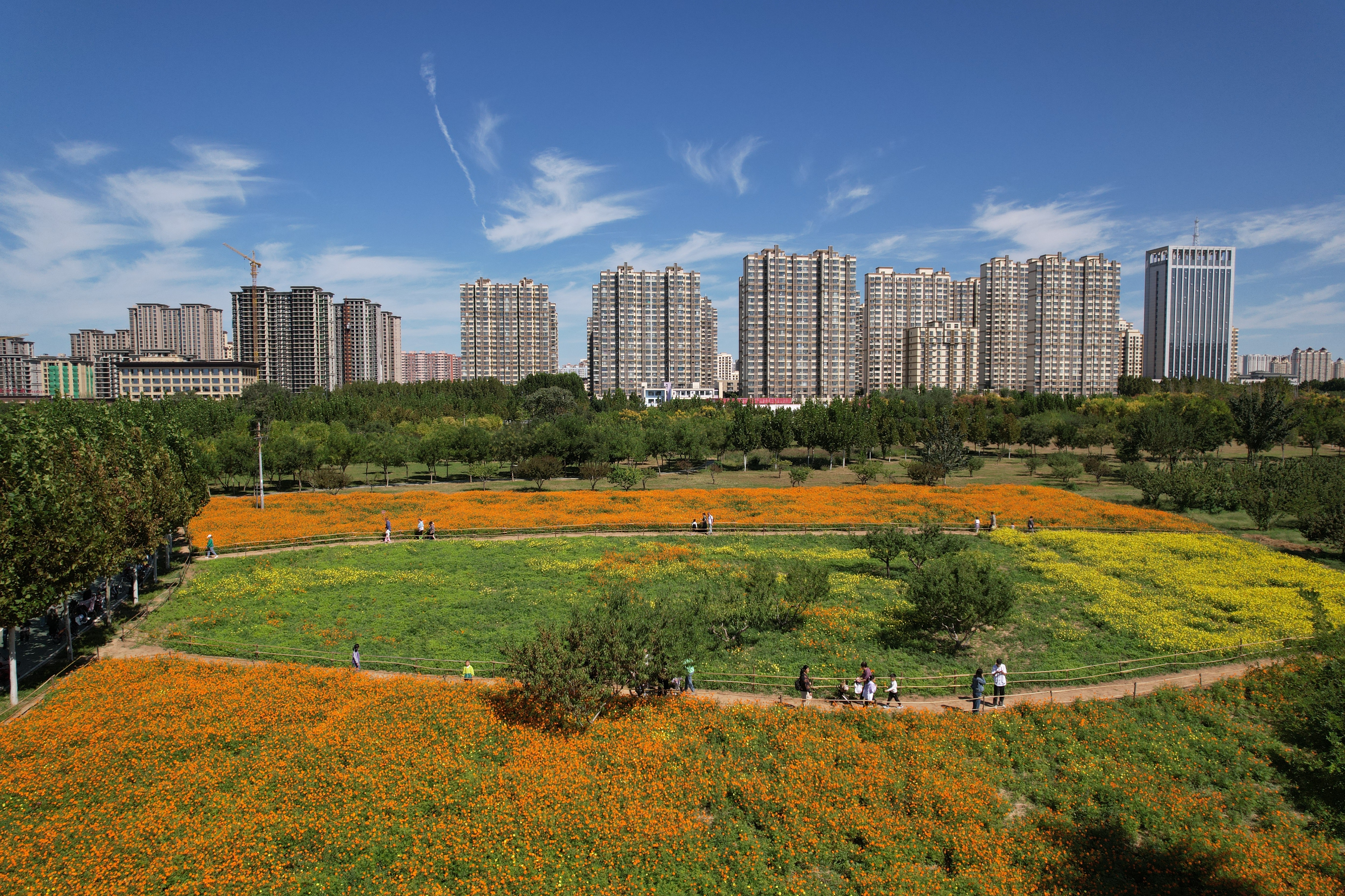 硫华菊位于宝云公园内东北方向,沿着游步道前行,步道边有座椅,是漫步、骑行、赏景的绝佳地。道路两边的花海,硫华菊、格桑花等秋季的代表花卉正绚烂地盛开,散发出阵阵清香。它们或黄或白,或紫或红,色彩斑斓,形态各异,有的含苞待放,羞涩地藏于绿叶之间;有的则完全盛开,花瓣层层叠叠,宛如精致的绣球,散发着淡淡的清香,吸引着蜜蜂和蝴蝶前来采蜜,也为游人带来了一份视觉与嗅觉的双重享受。