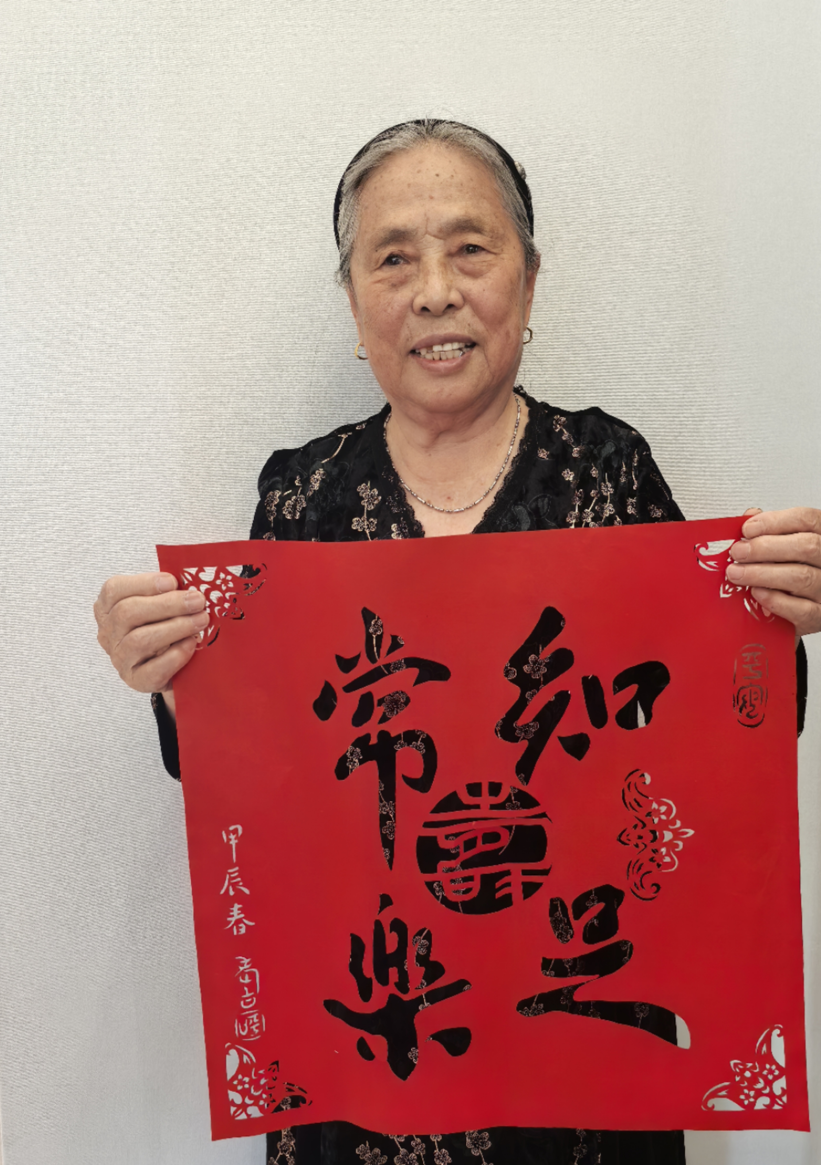 “喜气洋洋”的作品,不仅仅是记录,更是老人积极乐观生活态度的写照。老人的女儿张女士介绍,母亲为人豁达,特别爱交朋友。凡是到家里的客人,只要表现出对某幅剪纸的喜爱,老人都会毫不犹豫的送给人家。久而久之,“剪纸奶奶”的名声便传了出去。今年,老人已经为好几对儿慕名上门的新人剪了红彤彤的大喜字,虽然费力不少,但“看到孩子们那么高兴”,老人觉得很满足。