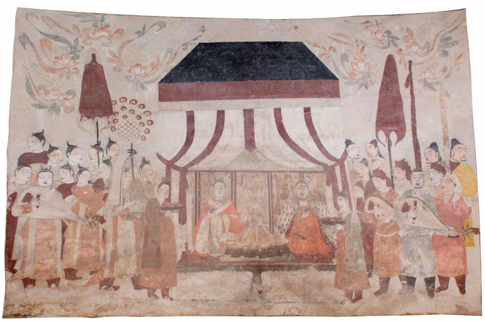 这是徐显秀墓室北壁墓主夫妇宴饮图。(太原北齐壁画博物馆资料图片)
