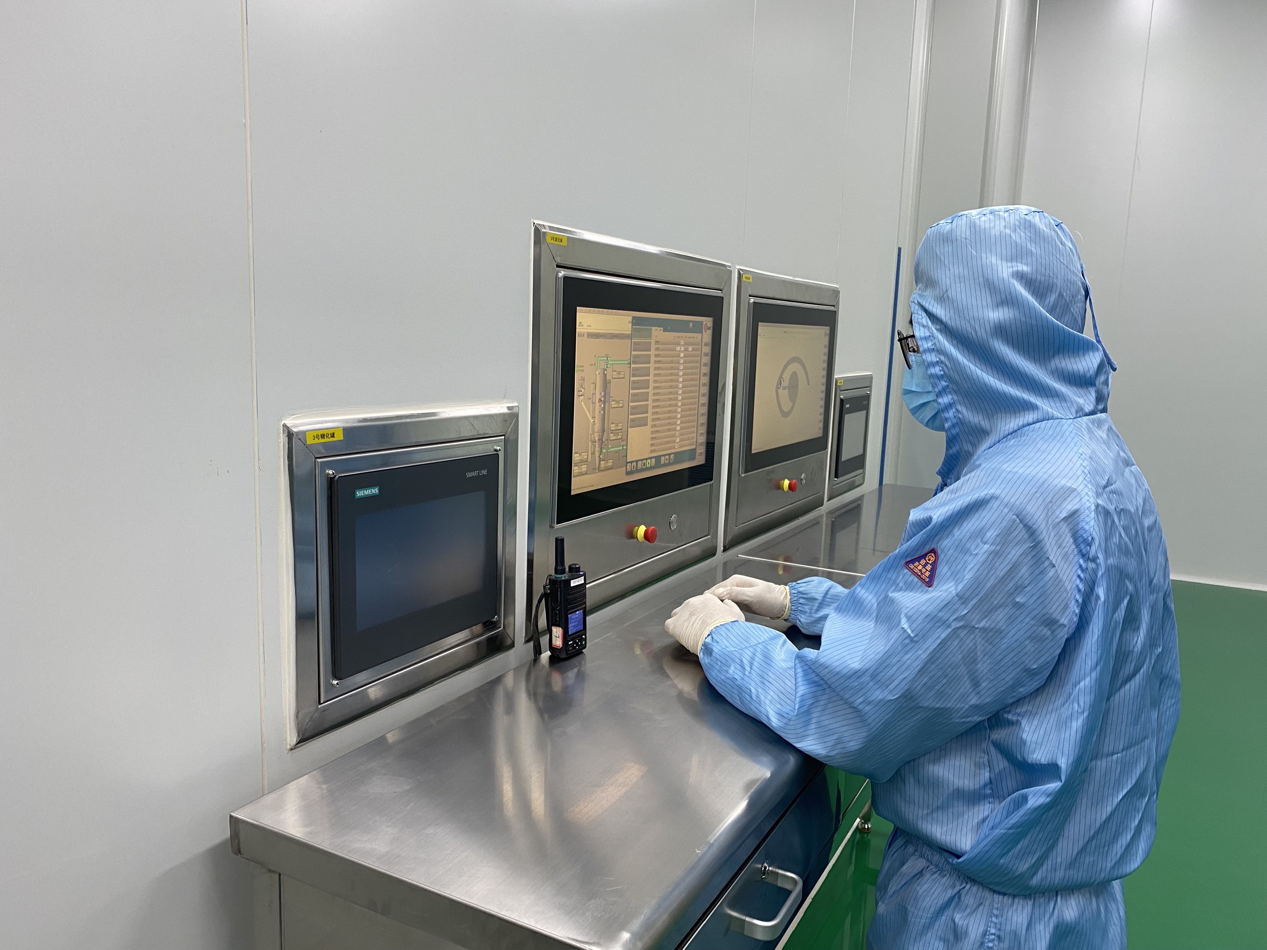 “这是流化床设备系统的核心与大脑,所有控制操作都在这完成,它智能化、先进化,工人在整个生产过程控制这就可以,单条流化床生产线两个工人一天就可以生产逾5吨产品。大大节省了劳动力,也降低了工人的劳动强度,提高了生产效率。”贾树红在总控屏幕前介绍,这套进口自德国的流化床设备从生产到在线清洗只需要工人从电脑上操作。