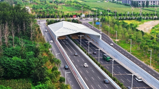 迎旭门隧道主线通车后景象(拍摄于2023年10月)。中交三公局第六工程(河北)有限公司供图
