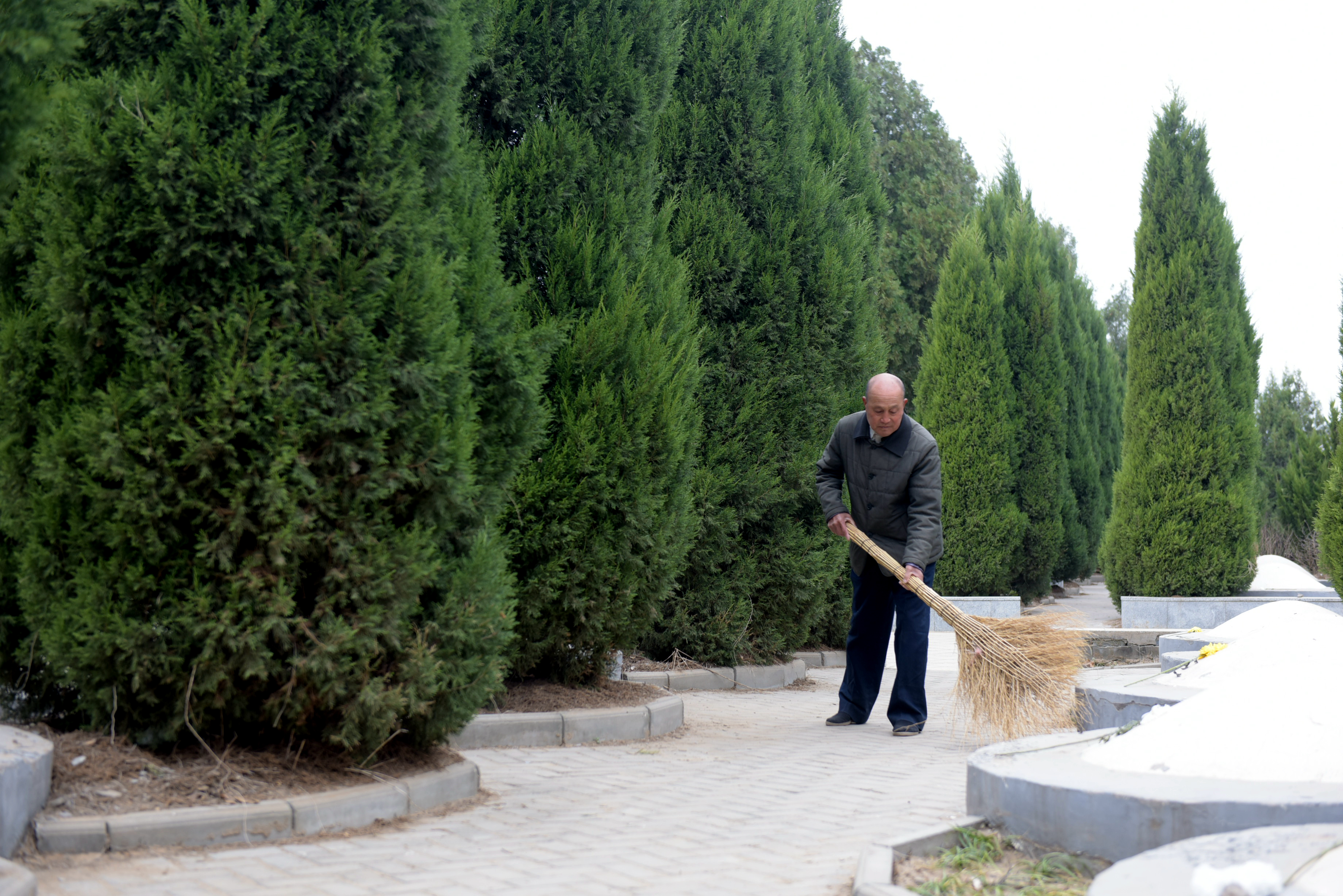 王志杰在回民支队烈士陵园打扫卫生。 崔贤飞 摄