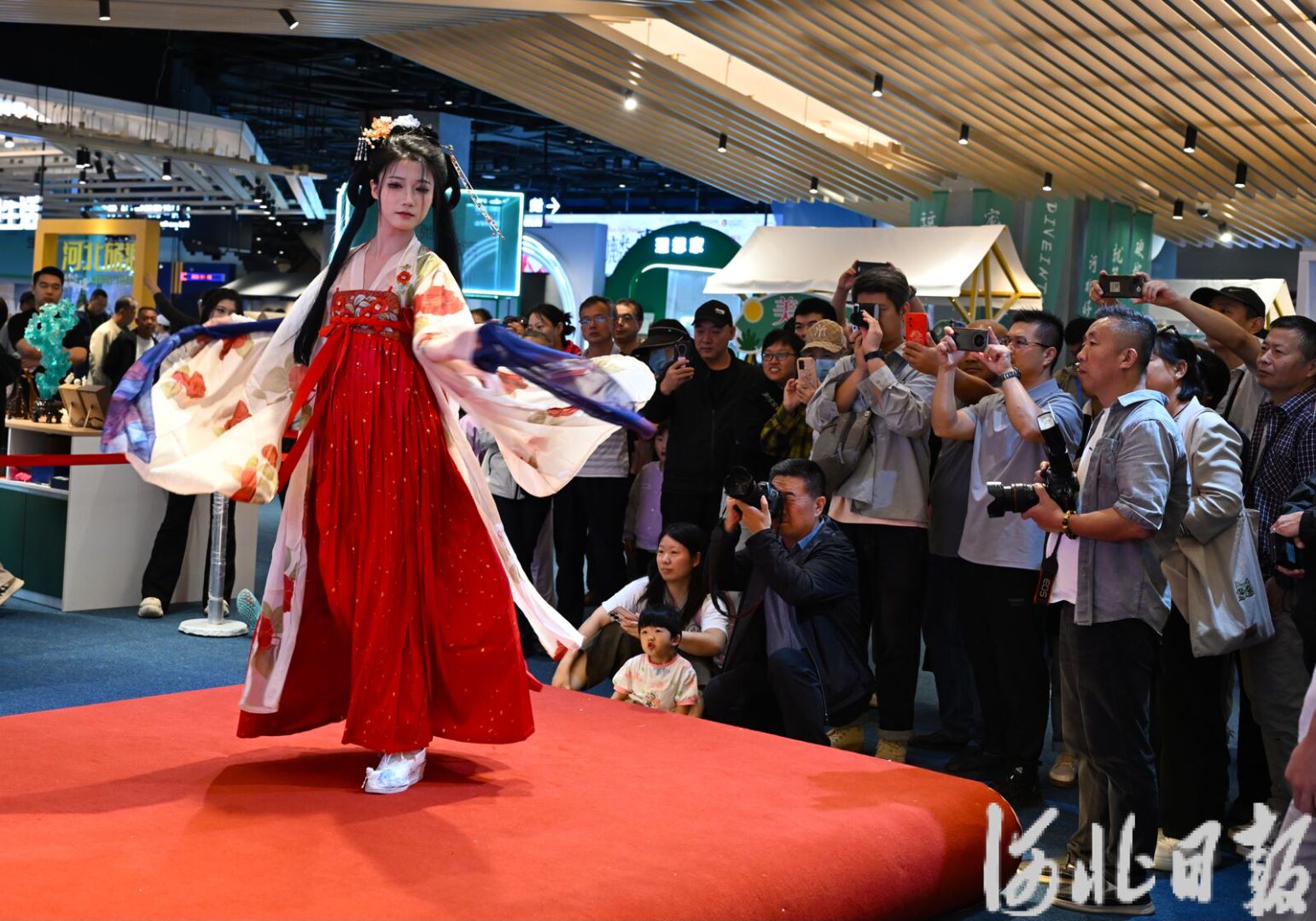 9月22日,廊坊市民在第八届河北省旅游产业发展大会生活美学市集文创展上观看汉服表演。河北日报记者赵永辉、田明摄
