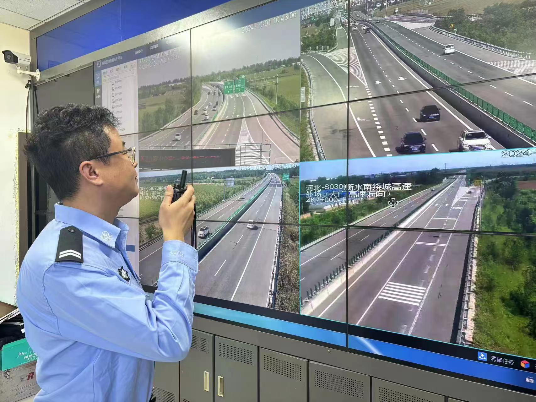 在高速交警冀州大队辖区现场,记者看到,根据分工,各组民警各司其职,有条不紊地忙碌着。定点保通组设置在衡水北收费站、衡水西收费站、冀州南收费站,他们实时关注着车流量、加强指挥疏导,引导车流、警示提示等工作。机动巡逻组采取分组、分段、短距、快速循环式不间断的方式在路面巡逻,以便及时掌握辖区车流量信息,提前做好各类应急准备。视频巡察组则由大队带班领导和大队内勤民辅警组成,他们在指挥中心对路面通行情况开展实时巡查并调度指挥路面警力,按照未堵先疏、小堵早疏的原则,开展疏堵保通的工作。
