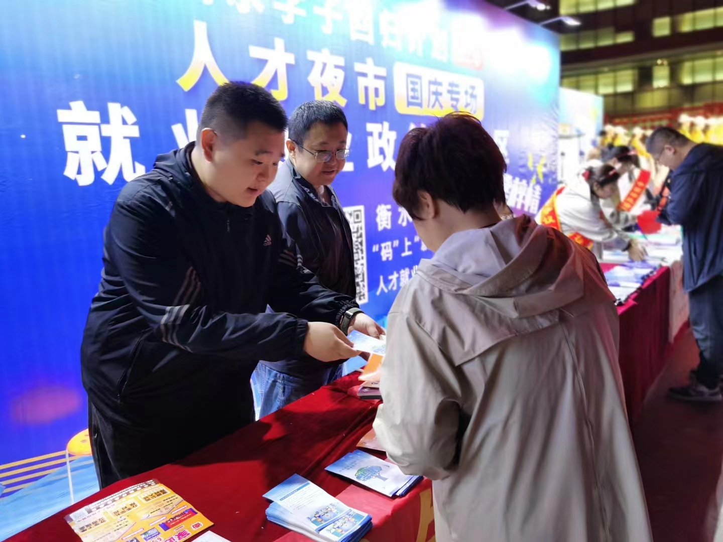 9月30日晚,“桑梓情 心永衡”衡水学子回归计划之第二季“人才夜市”国庆专场活动,在市区爱琴海购物公园广场举办,为青年人才与企业架起求职用工的“鹊桥”。