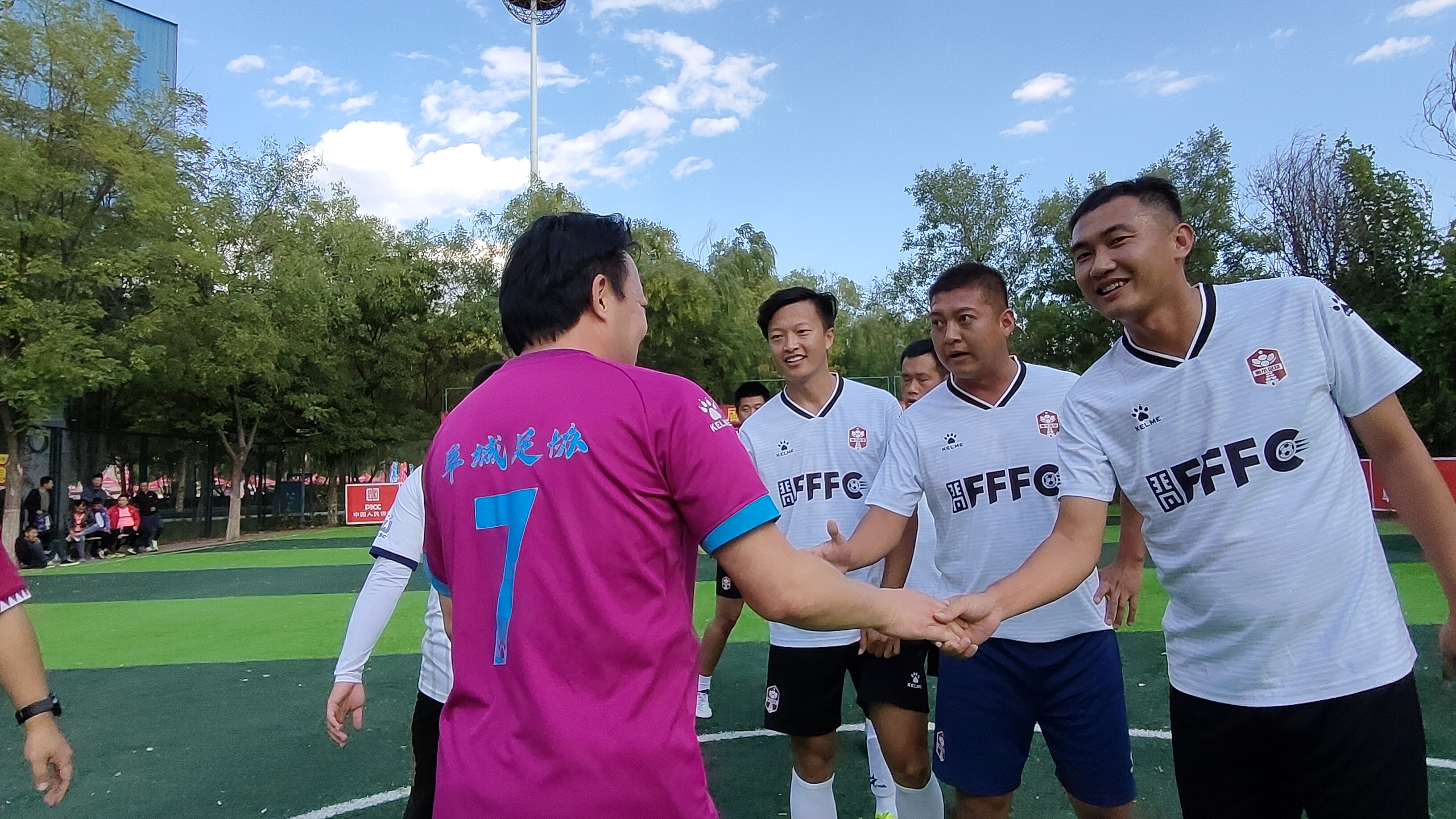 又一声哨响,比赛结束。胜负对双方球员来讲早已不重要,彼此拥抱、击掌,相互竖一个大拇哥,友谊第一,比赛第二!