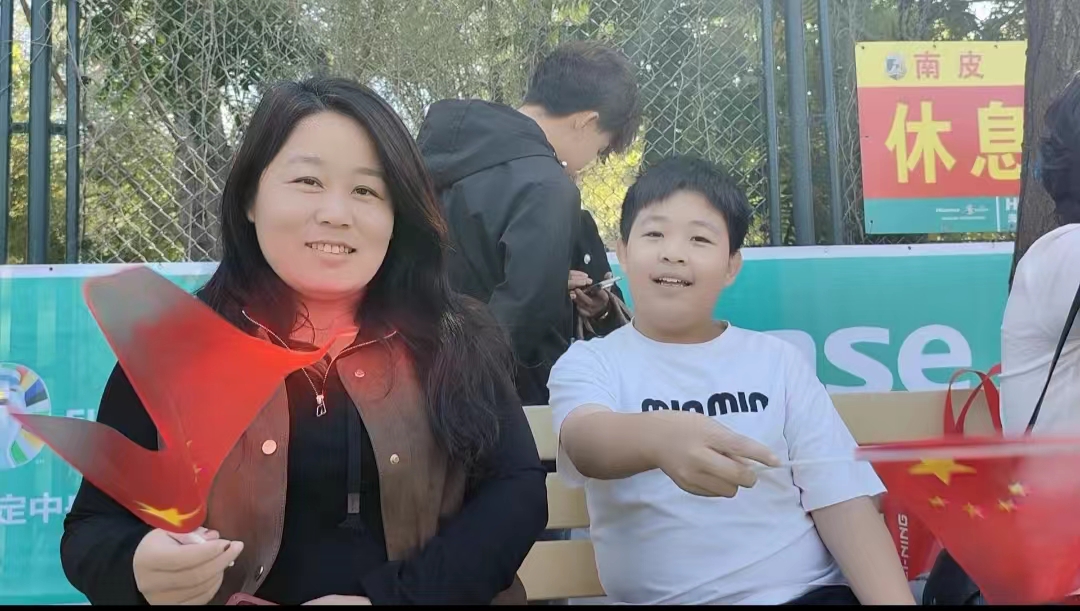 由于是七人制足球,每场比赛时间为30分钟,分上下各半场15分钟,中间休息1分钟,保证队员们在体力充沛的情况下把球技发挥得淋漓尽致,这也大大增加了赛事的观赏性。场上激烈拼抢,场下喝彩声不断。不少当地的小球迷,特意在脸上贴了国旗贴,举着小红旗,呐喊助威。更有不少成年人坐在场边,全神贯注观看球赛,看到精彩处,便跳了起来,高举双拳,“好球!”其中一位大哥更是感慨地说:“嘿!这才是中国足球该有的样子!”