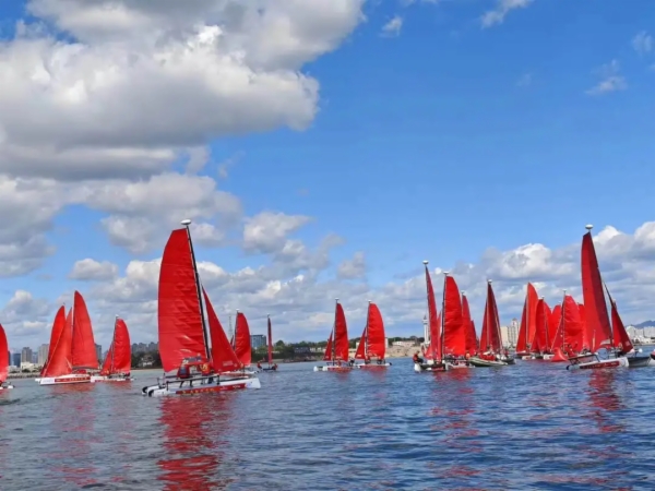 2024年“为祖国升帆”活动于10月1日在秦皇岛国际旅游港盛大启幕。由Hobie Getaway、FAREAST 28R、Optimist、FAREAST 11四个组别共75条帆船组成的巡游船队,在新中国成立75周年之际,用航海人最高礼节——“升帆”为祖国庆生。来自北京、天津等全国各地的近200名航海爱好者驾驶帆船,在湛蓝的海面上升起红帆,以独特的方式,表达对祖国深深的热爱。