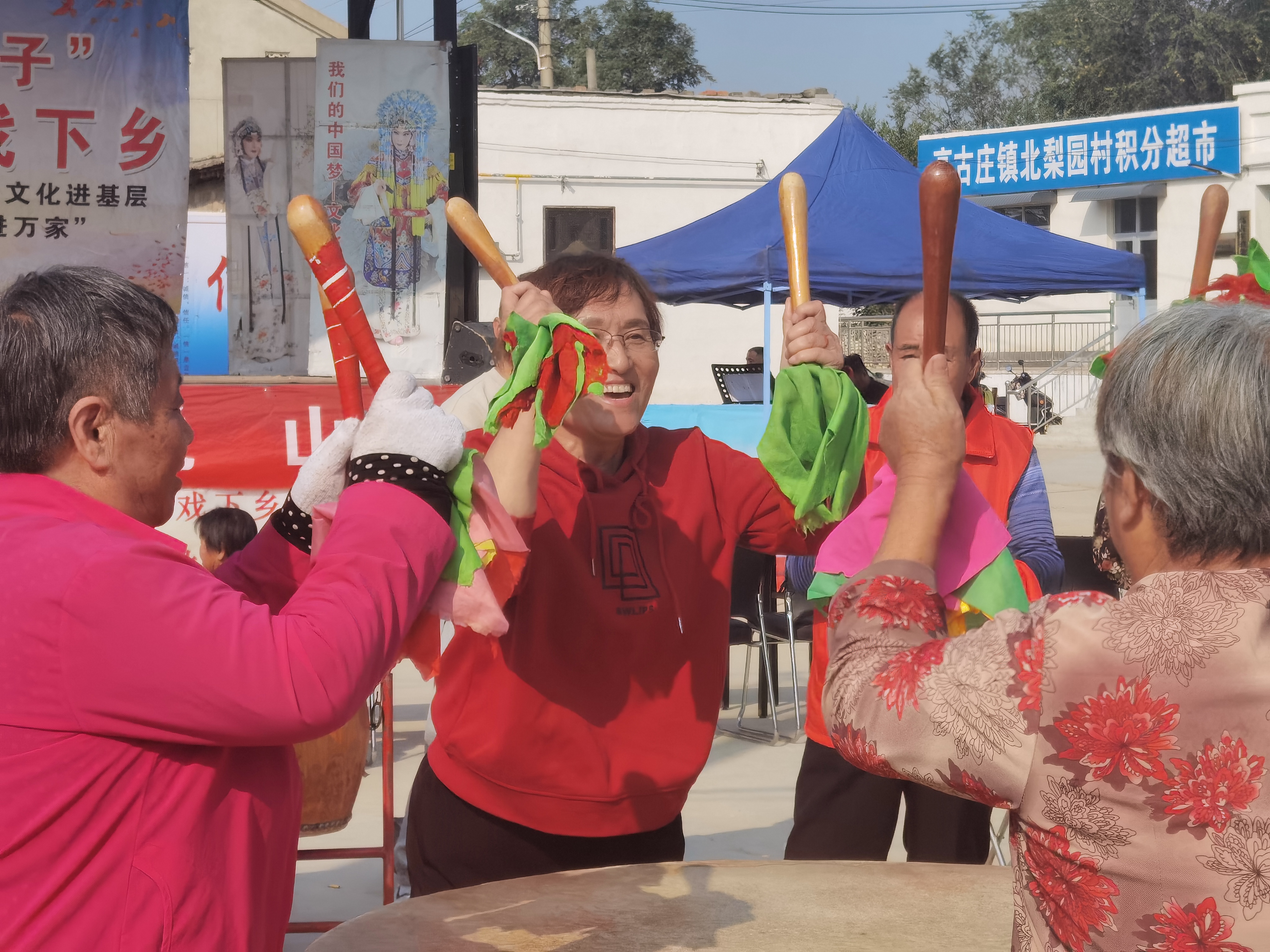 当日上午10时许,北梨园村文化广场处乐声悠扬,由衡水市河北梆子剧团带来的《杜十娘》等戏曲节目一一登场,演员们字正腔圆,唱念做打,韵味十足,一颦一笑间传递出戏曲的神韵。台上高声唱,台下掌声响,戏迷低声和。你瞧,村民李晓凤等戏曲爱好者们就熟练地合着拍子轻声跟唱。唱到开心处,他们还会时不时地翻动手腕,学着台上演员摆个动作,一招一式都力求惟妙惟肖。