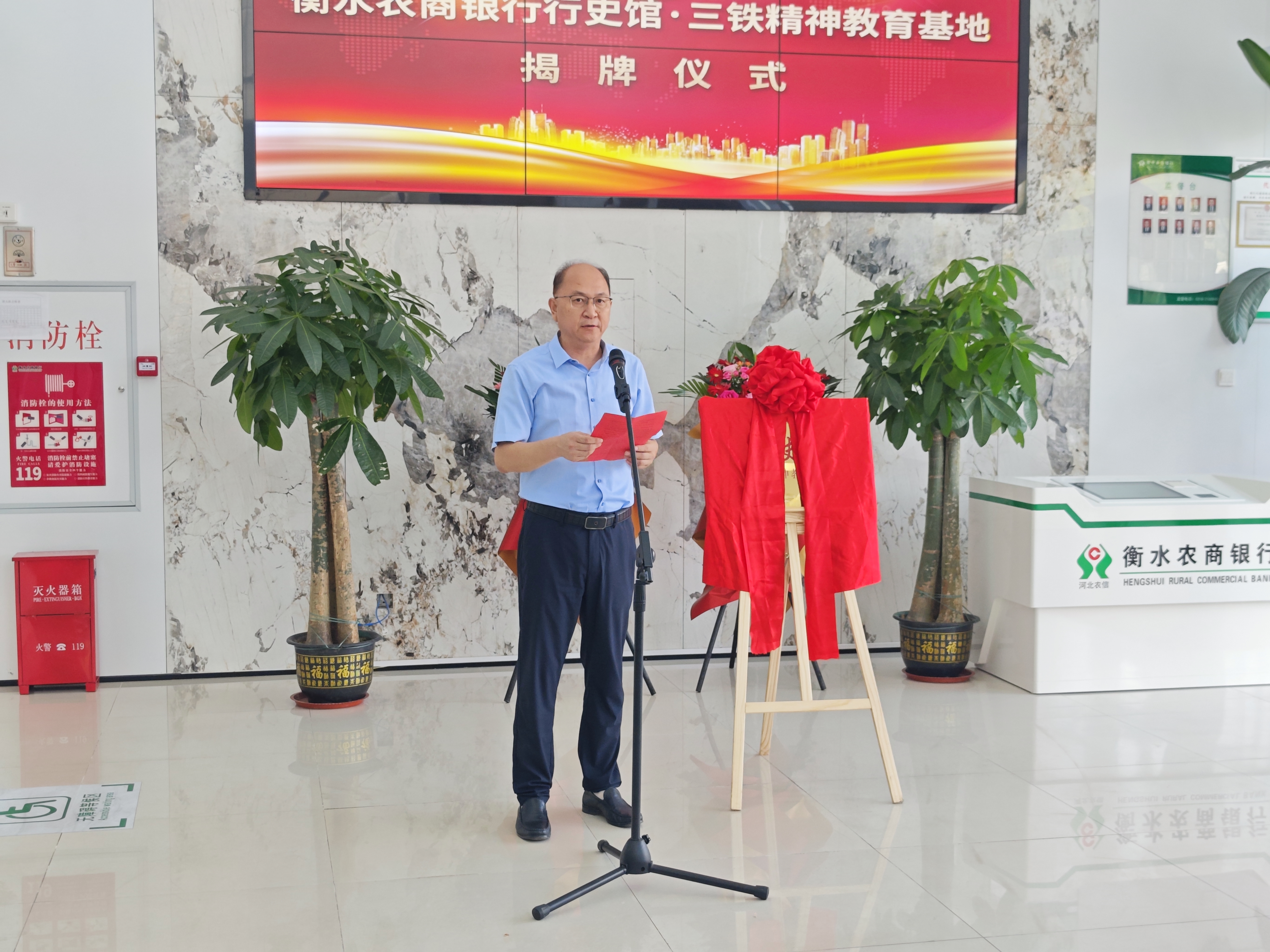 总行党委书记、董事长冯占中发表致辞:“历经数月的筹备和建设,本着务实节俭、突出发展底蕴、展现农信特色的原则,行史馆暨三铁精神教育基地正式建成并顺利开馆,这是衡水农商银行发展史上具有纪念意义的一件大事。立足衡水农商银行成立七十二年的光辉历程,行史馆生动再现了农商先辈们艰苦卓绝的创业史、百折不挠的奋斗史、可歌可泣的发展史,浓缩了“铁账本、铁算盘、铁规章”的三铁精神,展现了转型发展的时代召唤、服务三农的责任担当、党建铸魂的精神力量。要将行史馆打造成为品牌展示窗口、同业交流平台以及教育学习基地,充分发挥行史馆凝集人心、增进团结、激发动力的文化阵地作用。”