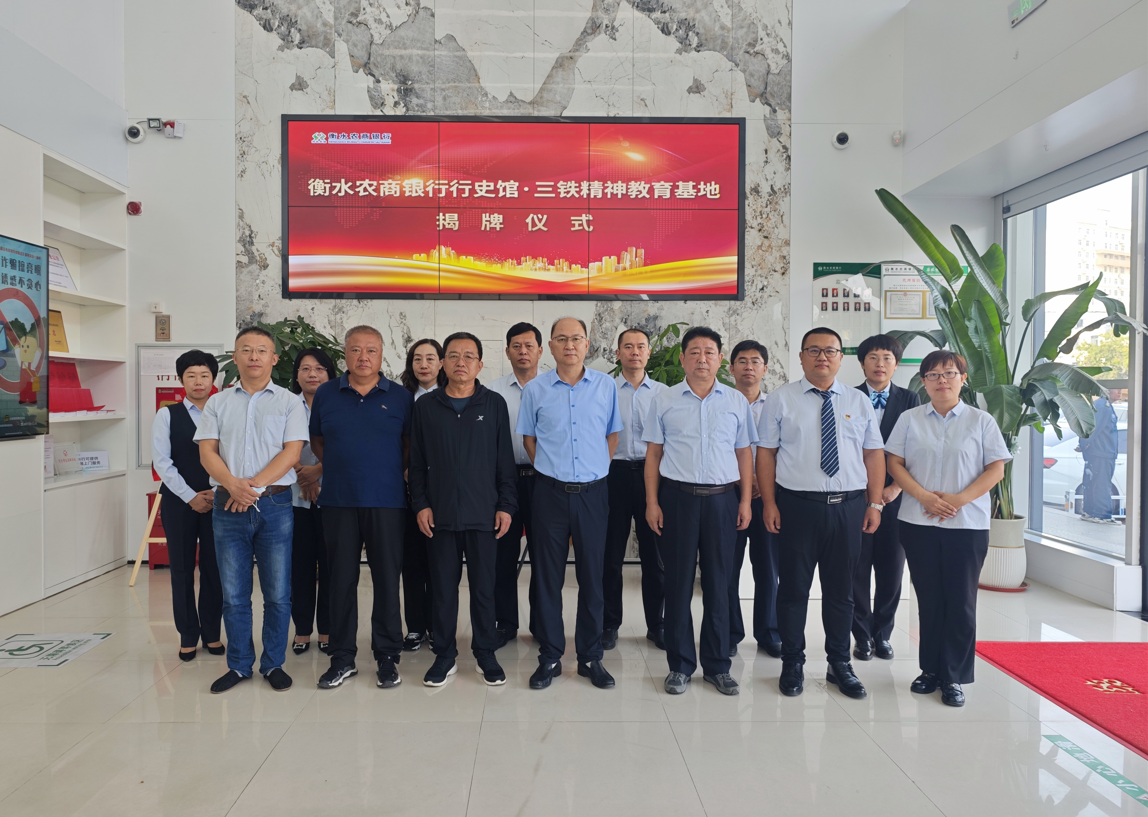 时值新中国成立75周年之际,为传承农信文化、铭记“三铁”精神、赓续红色基因,从历史中汲取前进力量,日前,“衡水农商银行行史馆·三铁精神教育基地”(以下简称行史馆)揭牌仪式在衡水农商银行滏阳支行举行。衡水农商银行党委书记、董事长冯占中、原桃城区农村信用合作社联合社理事长韩茂起、原桃城区农村信用合作联社主任陈红卫、衡水农商银行工会主席韩明亮共同为行史馆揭牌,部分部门负责人、部分支行行长,退休老党员、老干部代表,员工代表共同见证仪式并参观了全新落成的行史馆。