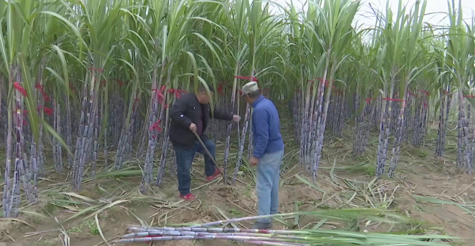 李杨回忆说,一年前,他和张光远在这片地上种白菜、香菜,没承想,不但没挣着钱,还赔了本。有一回,他在网上瞅见广西成片的甘蔗林,一个大胆的想法冒了出来——把甘蔗弄到北方种。第一次在北方种甘蔗,李杨和张光远心里也没底,不知道甘蔗能不能在安平生长。后来,经过多方联系,他们专门跑到广西学习经验、购买苗种。