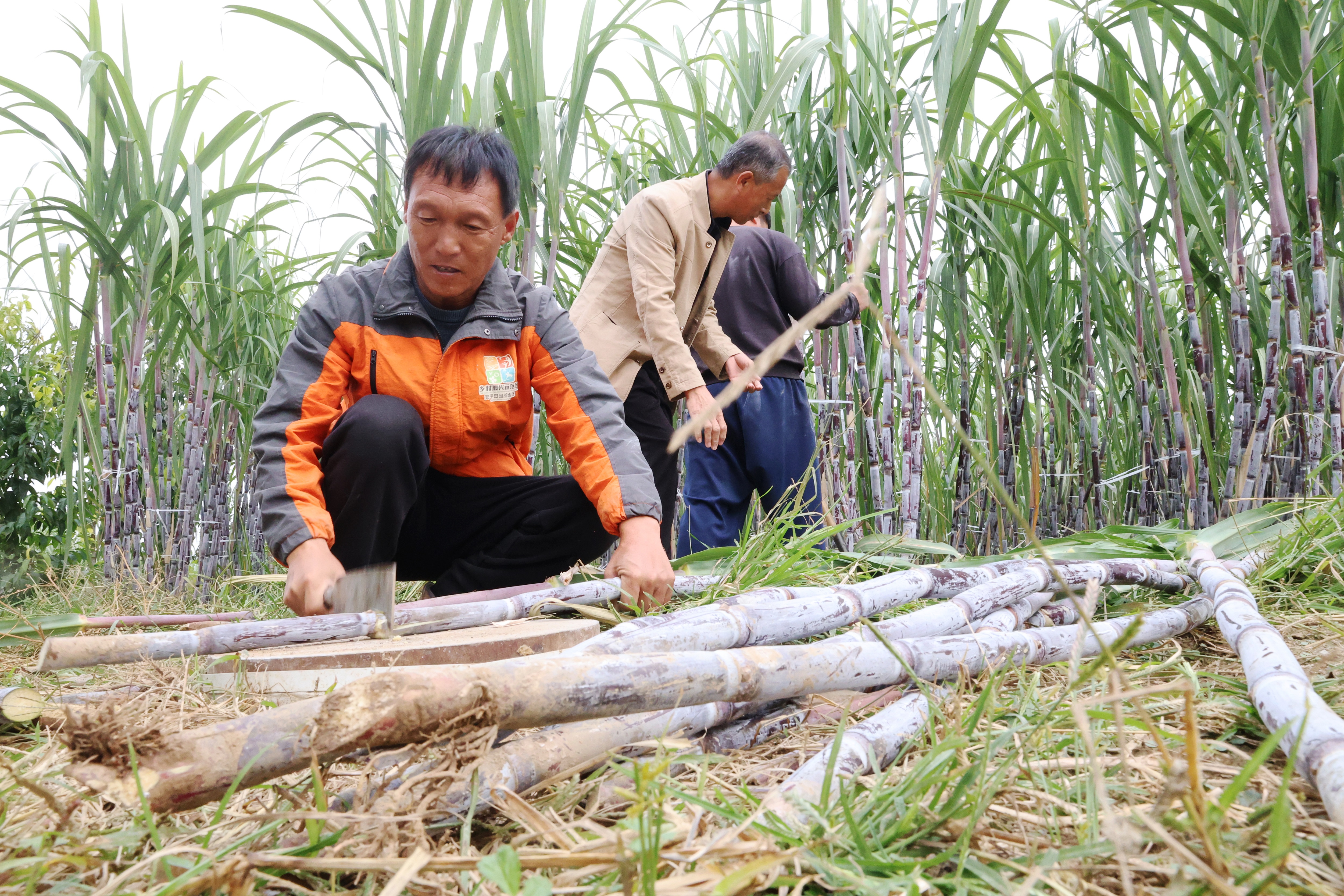 张光远砍削甘蔗。