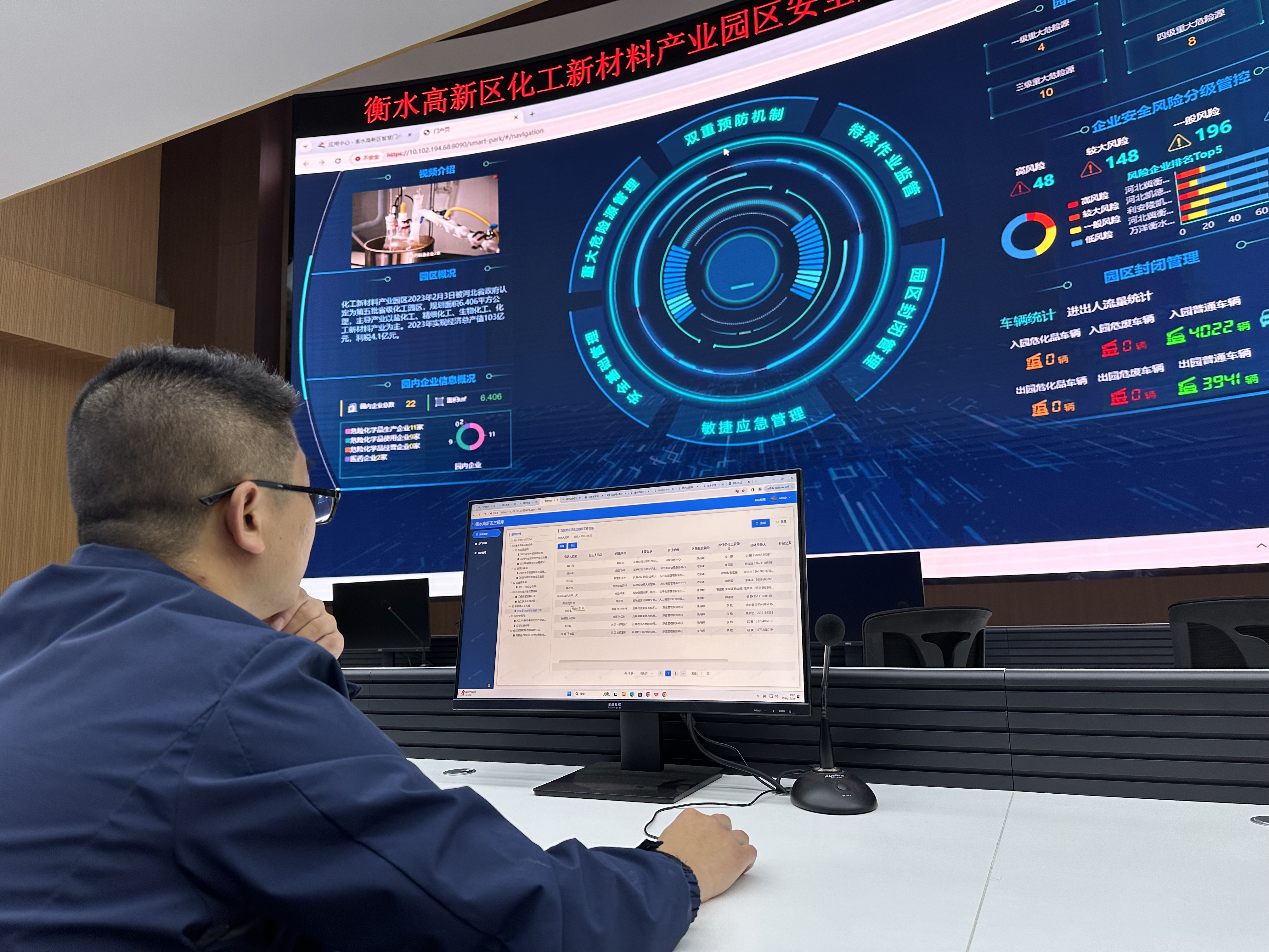 工作人员查阅衡水高新区化工新材料产业园安全运行情况