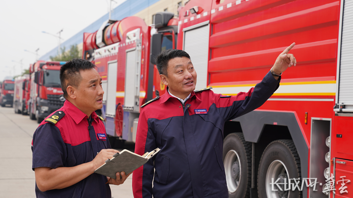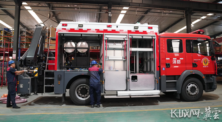乔安营:我们企业最主要的产品包括三大类:应急救援车辆、防护装备、救援装备信息化,其中,智能消防类车辆占比80%以上,在大家看来,消防车只能用于救火,但我们生产的消防车辆有八九十种,不仅能灭火,还可以排烟排涝,应用于地震救援,以及各类后勤保障,我们是河北省第一家取得消防车生产资质的企业。