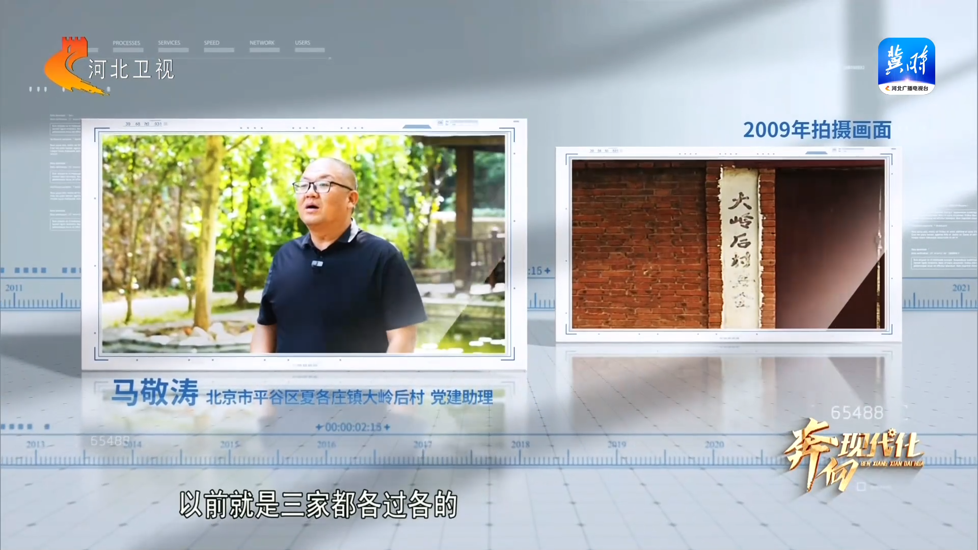 一脚跨三地,一碑阅十年。这里就是北京平谷区、天津蓟州区和河北三河市的一个交汇点。三界碑下,北京的大岭后村、天津的大岭后村和河北的东八里沟村原来是一个村,都叫"大岭后"。从彼此分割到共融共生,蝶变的触角在三地不断延伸。