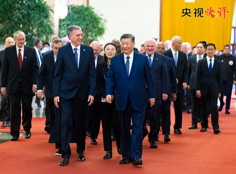 习近平主席以人类前途为怀,以人民福祉为念,与远道而来的国际友人一道,畅叙长期合作结下的深情厚谊,分析当前形势,共同谋求建设更加美好的世界,为国际交流合作树立了典范,引发外方嘉宾和国际社会热烈反响。