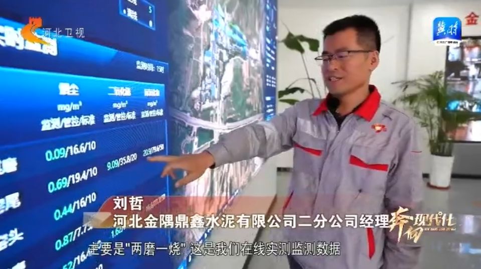 这是我们水泥生产线最重要的工艺流程,主要是"两磨一烧",这是我们在线实测监测数据,现在这个氮氧化物排放21毫克每立方米,较比创A标准的50毫克每立方米,降低了约一半。