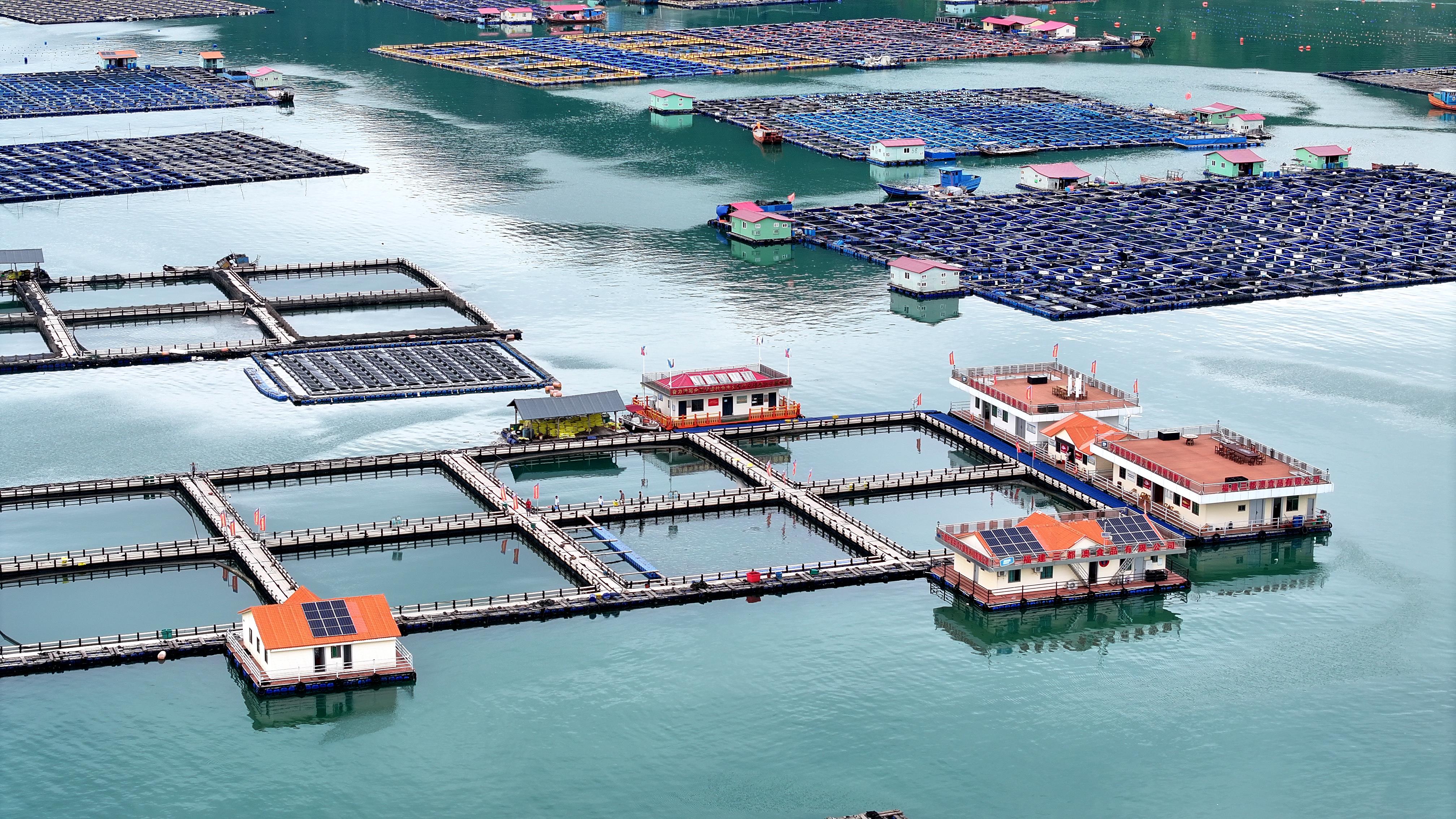 在位于广东省湛江市的国家863计划项目海水养殖种子工程南方基地,选育养殖池里,金鲳、海鲈、石斑等各类鱼种活蹦翻腾。2023年4月,习近平总书记在这里考察时踏上浮排,边走边看,赞叹眼前景象“真是翻江倒海”。