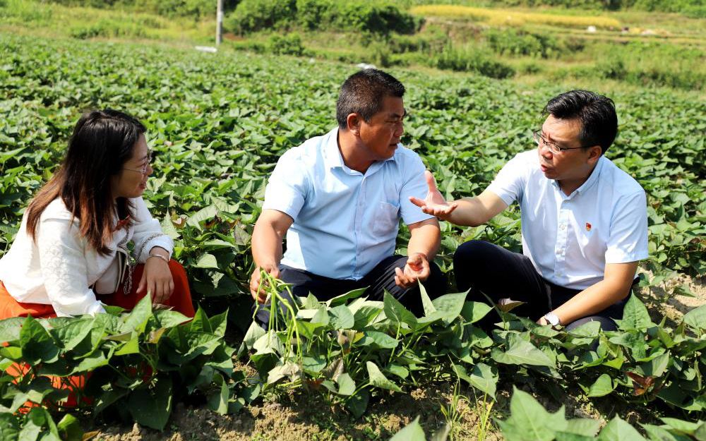 图:驻村书记与乡镇干部对接通过普惠金融谋发展促增收