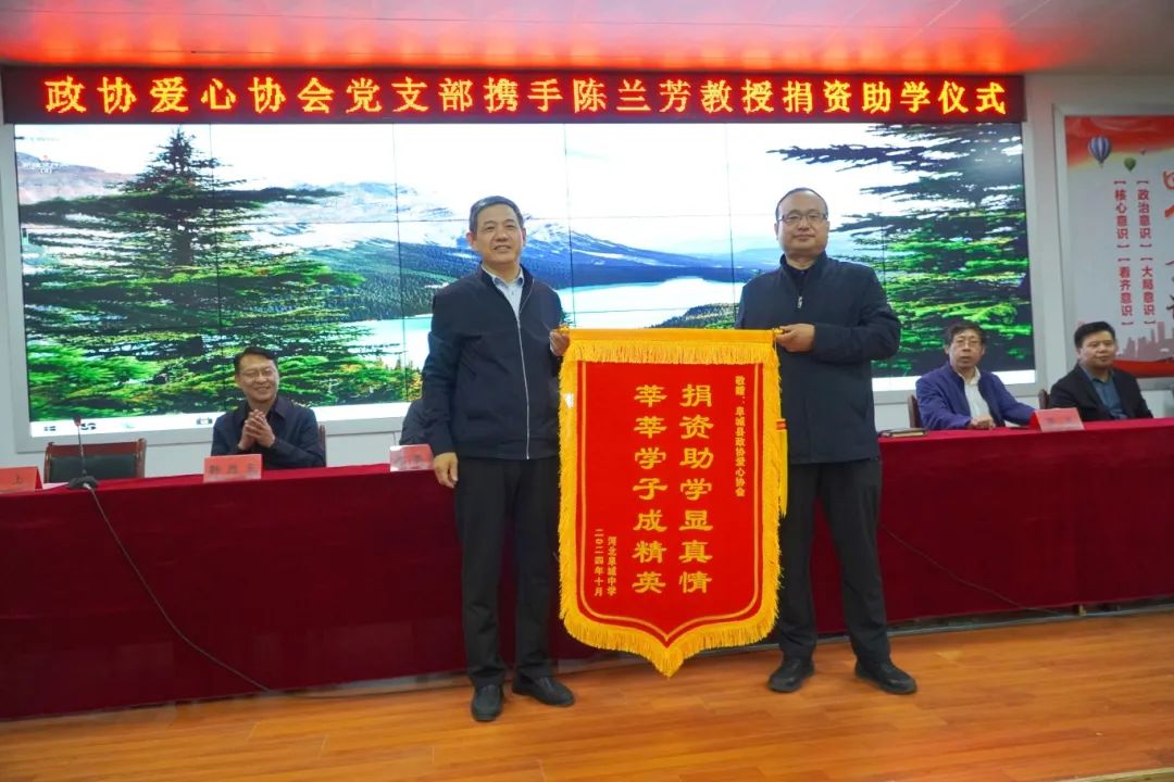 倾心助学情如海,育李培桃德若山。10月16日下午,阜城县政协委员爱心协会携手家乡在外成功人士陈兰芳教授捐资助学活动走进河北阜城中学,向贫困优秀学子发放助学奖品和助学金。