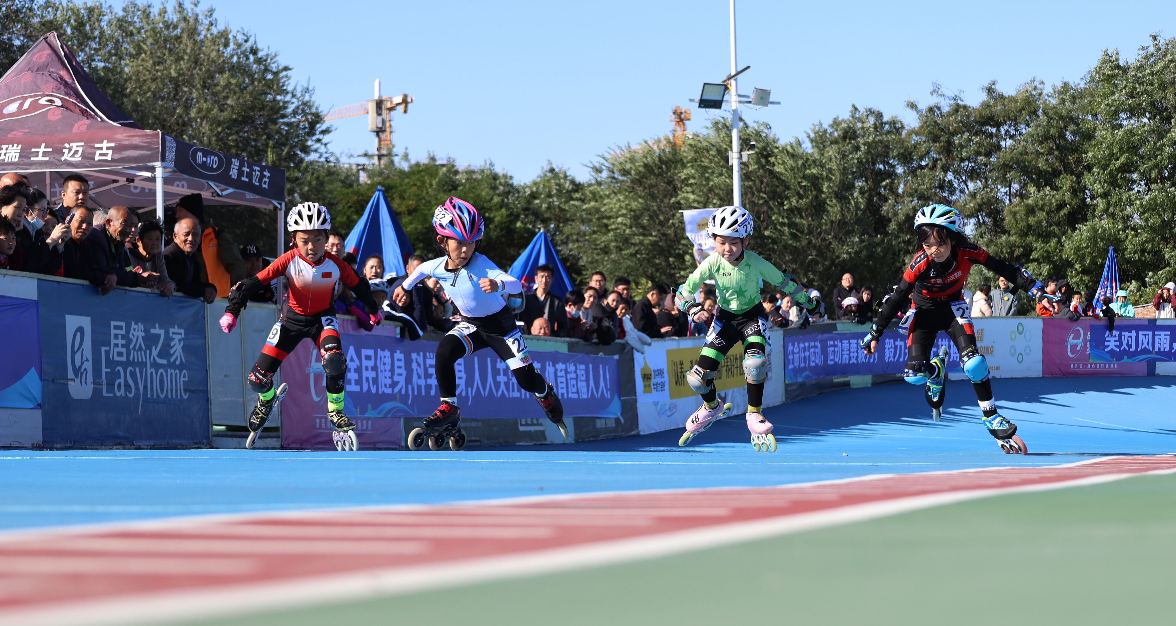 发令枪响,运动员们似离弦之箭,早已整装待发的他们迅速压低身子,风驰电掣般起滑,向着终点全力冲刺。赛道上,他们矫健的身影如闪电划过,灵巧的动作尽显速度与激情,一场场精彩对决令人目不暇接。看台边,围观群众和教练员们的加油呐喊声此起彼伏。