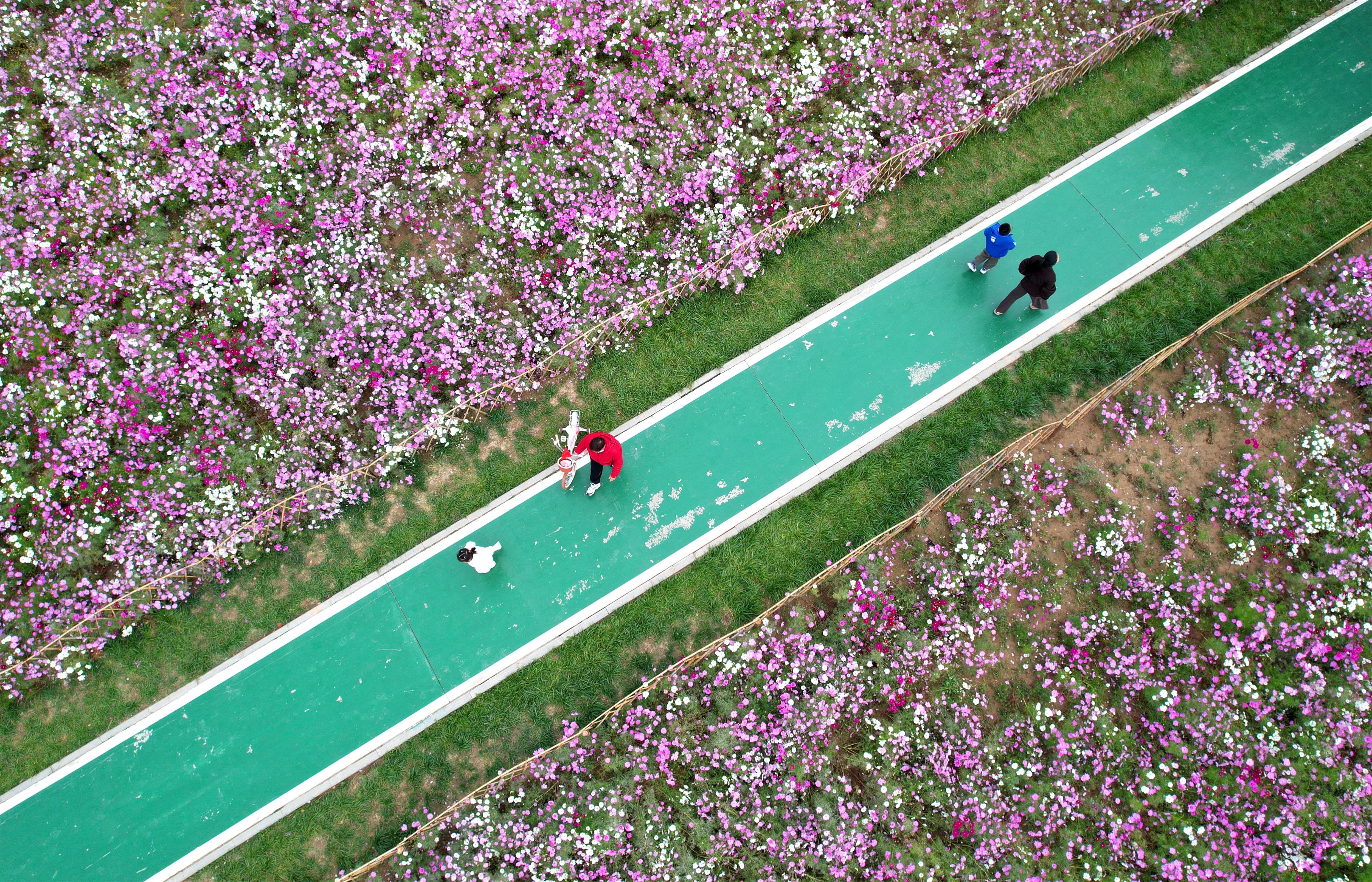 深秋时节,天气晴好。衡水宝云公园内,盛开的格桑花在秋风中摇曳,游客漫步在花间,赏花看景、打卡拍照,沉浸在秋日的宁静与美好之中。