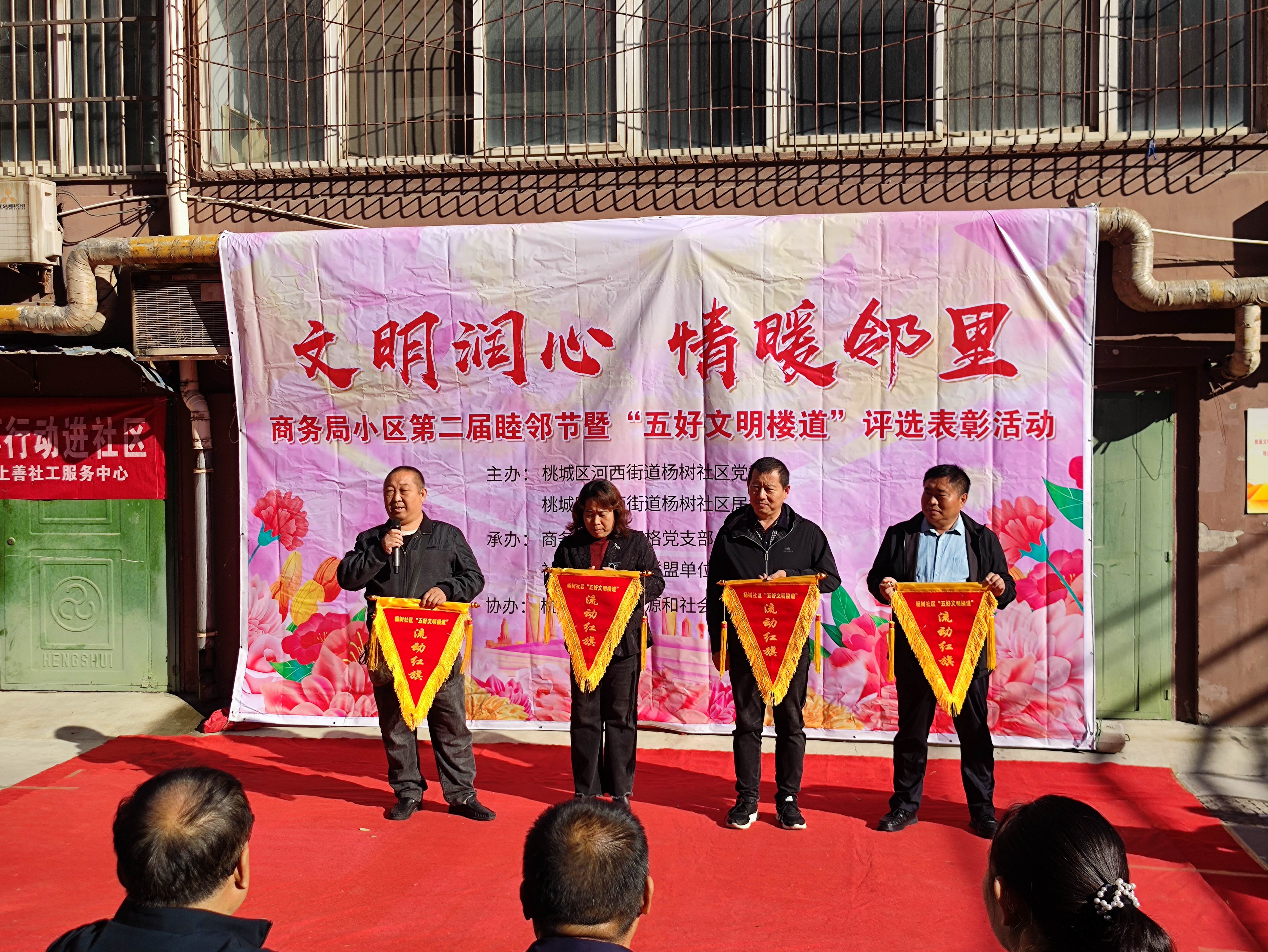 活动当天,首先进行了授旗仪式,为评选出的“五好文明楼道”颁发了流动红旗。随后,获奖的“五好文明楼道”代表们也各自分享了他们的经验做法。