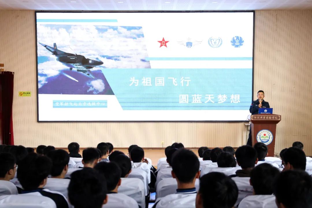 衡水中学实验学校始终高度重视空军招飞工作,把支持军队和国防建设作为义不容辞的责任,积极引导学生以过硬的身体素质和优异的文化素质接受选拔,投身国防建设。