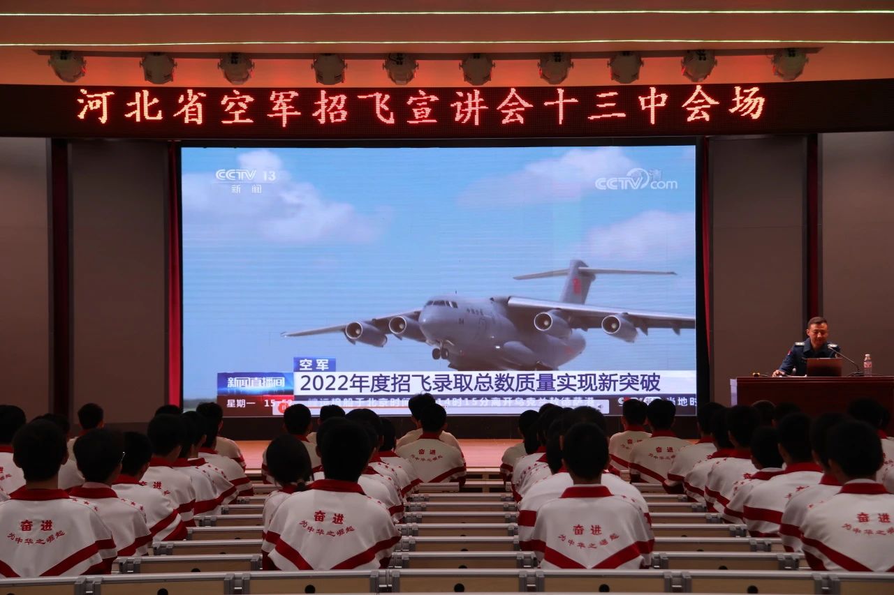 22日,空军招飞局北京选拔中心到衡水中学实验学校进行招飞宣讲。该校百余名身体素质好、有意愿报名空军飞行员的同学参加活动。