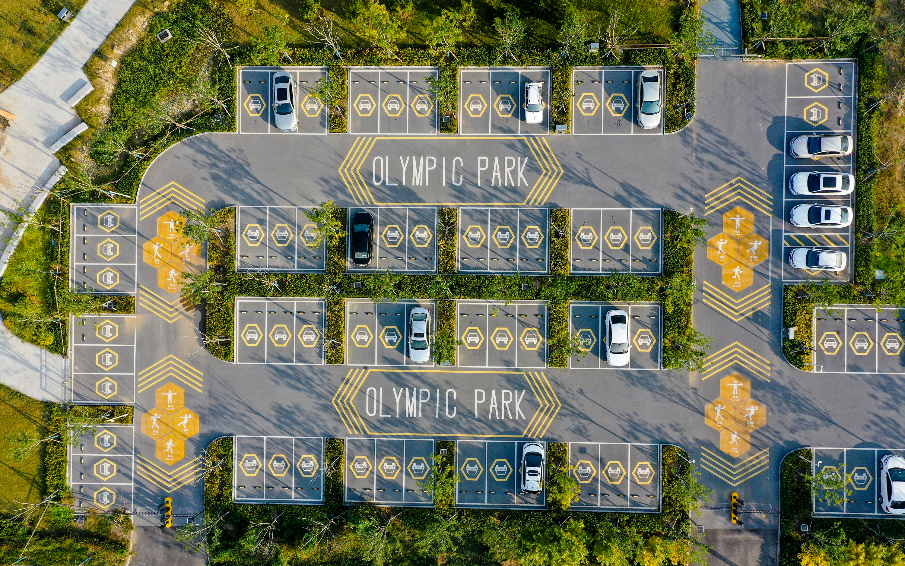 奥体公园规划设计以“奥体祥云”为设计理念,与紧邻的滏阳河、吴公渠、奥体中心相融合,形成“水畔祥云”的空间意象。整体工程包括园林建筑及小品、绿化种植、园路铺装、照明系统、灌溉系统、室外装饰、导览系统等建设内容。公园植物配置在充分保留原有乔木的基础上,种植彩叶植物、常绿植物及地被花卉,打造出了玉兰大道、林下花街、藤本花廊、雨水花园等植物景观,营造出四季鲜明的景观特色。无论春日郁金香的颜色缤纷,还是夏日月季的热烈浪漫,更或是秋日硫华菊的浓艳夺目,都让市民在移步换景之间尽情感受自然的美丽风采。