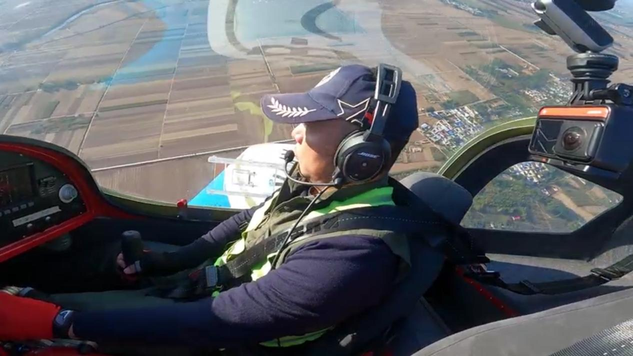 衡水桃城机场试飞员驾驶“毒蛇”飞机空中画面。陈康 摄