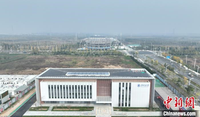 10月25日,航拍北京交通大学雄安校区首个单体项目西区综合服务楼。据了解,北京首批疏解到雄安的高校共四所,其中北京交通大学雄安校区规划占地2600亩,计划分两期实施建设,未来将满足36000名学生日常学习、科研、生活的需要。目前,北京交通大学雄安校区首个单体项目西区综合服务楼已基本完工,正在收尾验收阶段,计划2024年底投入使用。(无人机照片)中新社记者 韩冰 摄